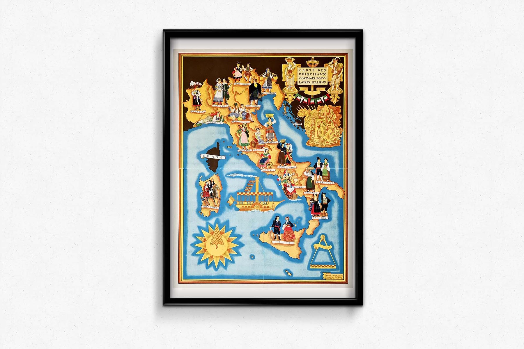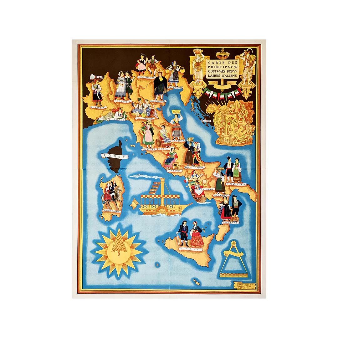 Très belle carte illustrée de 1934 représentant les principaux costumes populaires italiens.