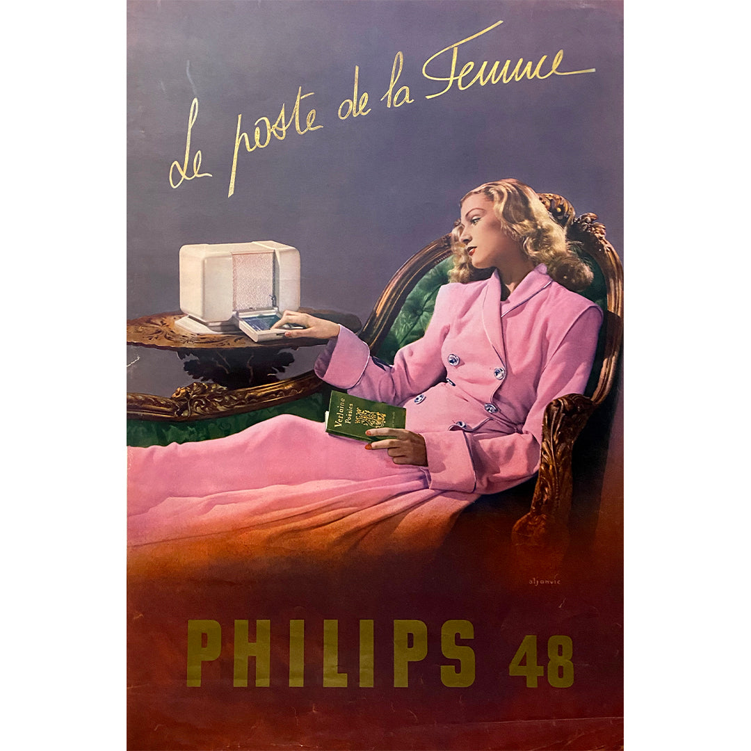 Affiche publicitaire réalisée par Aljanvic en 1948 pour la marque Phillips.
