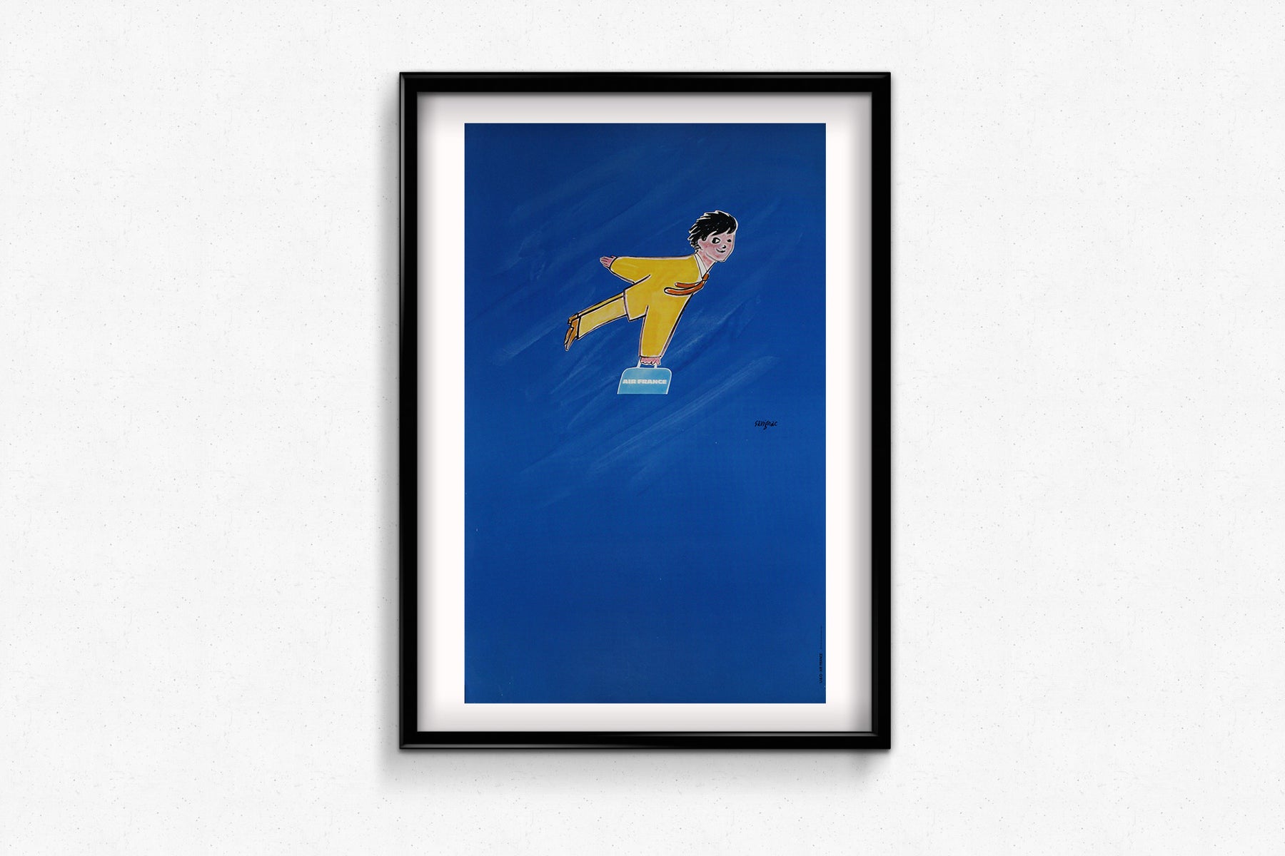 Dans les années 1970, l'image d'Air France était synonyme de luxe, de fiabilité et de raffinement. Cette affiche s'inspire de ces idéaux, misant sur l'humour et un design accessible pour séduire un large public. La simplicité de l'œuvre reflète une sensibilité moderniste, privilégiant la clarté et le charme à une imagerie trop complexe. Parallèlement, elle renforce la réputation internationale d'Air France comme compagnie aérienne alliant élégance et service d'avant-garde.