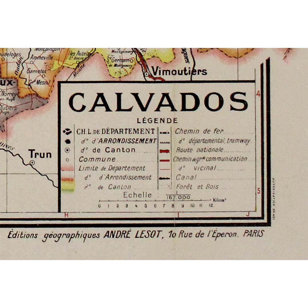 Aujourd'hui, cette carte est une pièce de collection prisée pour son importance historique, son attrait esthétique et sa réalisation d'une grande finesse. Qu'elle soit exposée comme œuvre d'art ou utilisée pour la recherche, elle demeure un témoignage remarquable du riche patrimoine et de la géographie du Calvados.