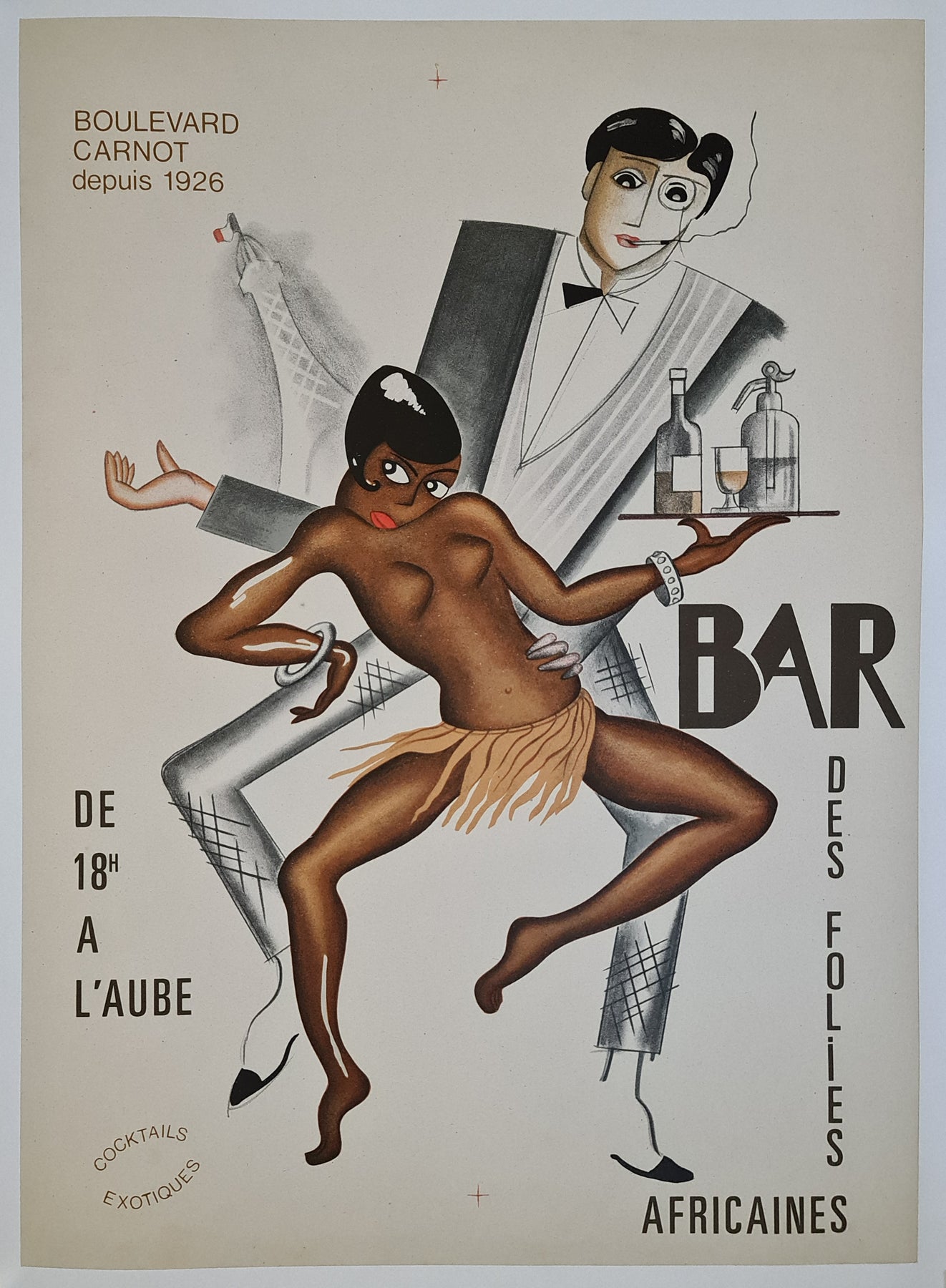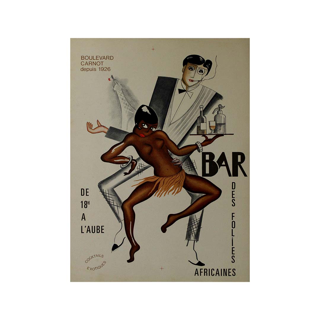 Durant cette période, Baker s'était imposée comme une figure emblématique du glamour, de l'innovation et des échanges culturels. Le « Bar des Folies Africaines » s'inscrit sans doute dans la continuité de son travail de pionnière visant à faire découvrir au public européen des éléments de la culture africaine et afro-caribéenne, en les mêlant au jazz et à l'esthétique moderniste qui ont marqué sa carrière. L'affiche incarne la vitalité et le charme cosmopolite des Folies Bergère et d'autres lieux mythiques qui ont fait de Paris l'épicentre mondial de l'innovation artistique et musicale.