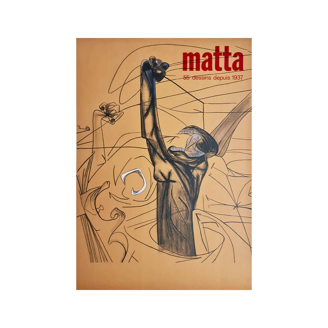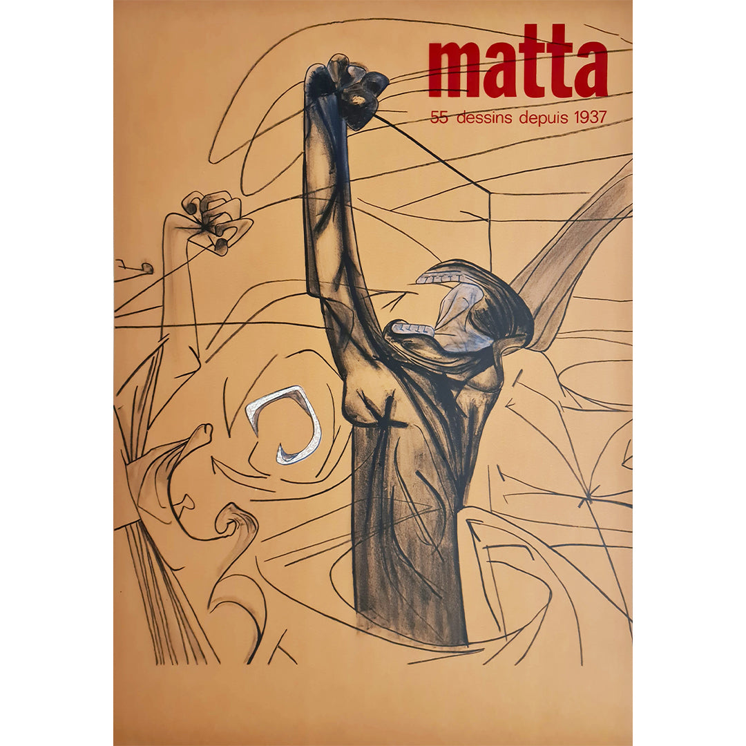 Beau Affiche d'exposition retraçant 55 dessins de Matta réalisés depuis 1937.