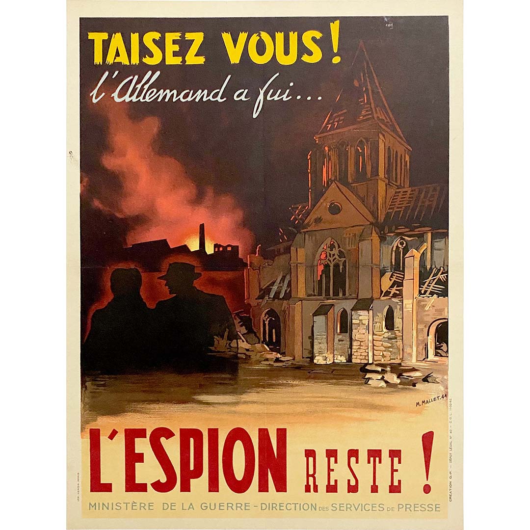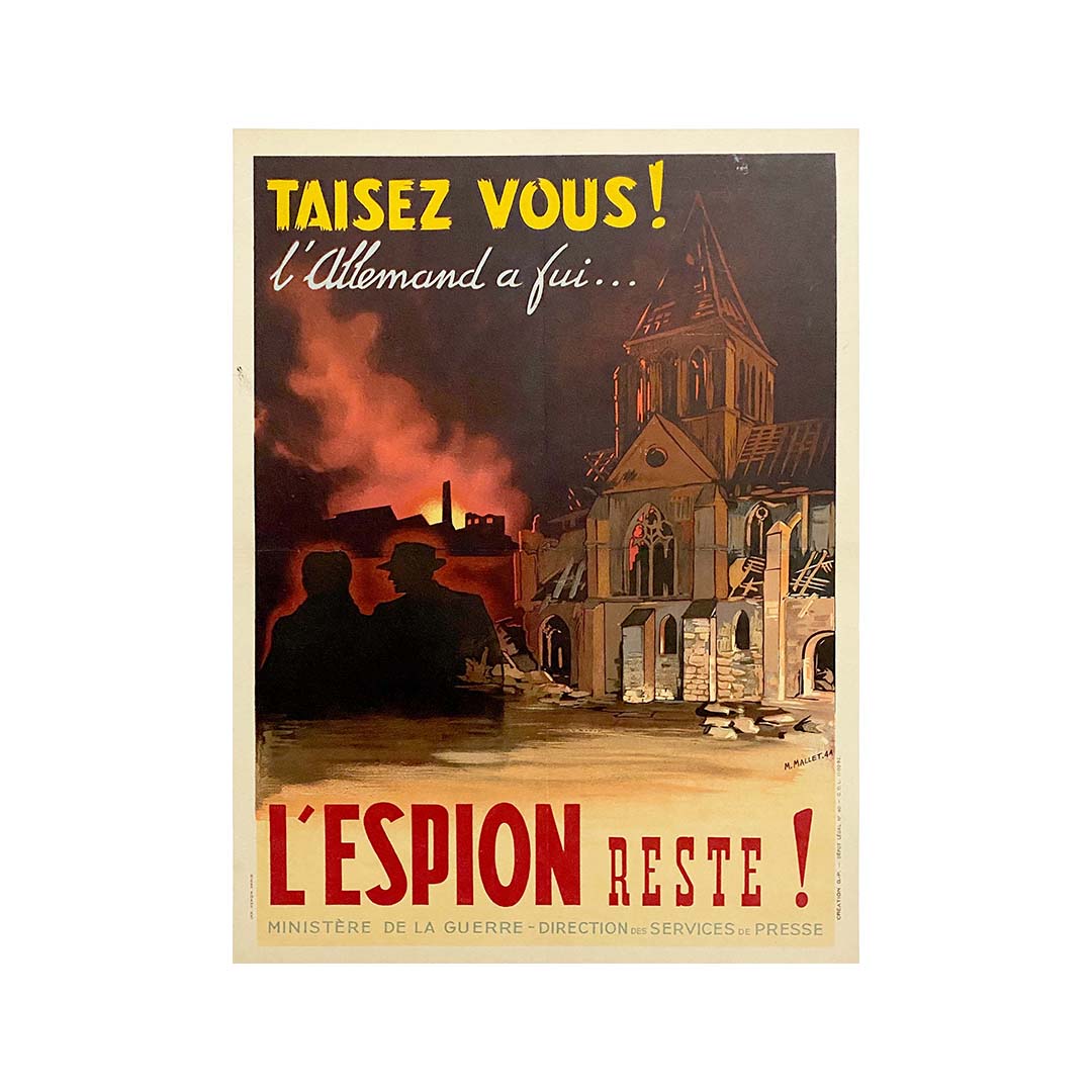 Ces affiches ont été placardées dans les rues pour avertir les citoyens français. On peut lire sur celle-ci : « Silence… L’Allemand a fui, l’espion est toujours là ! »