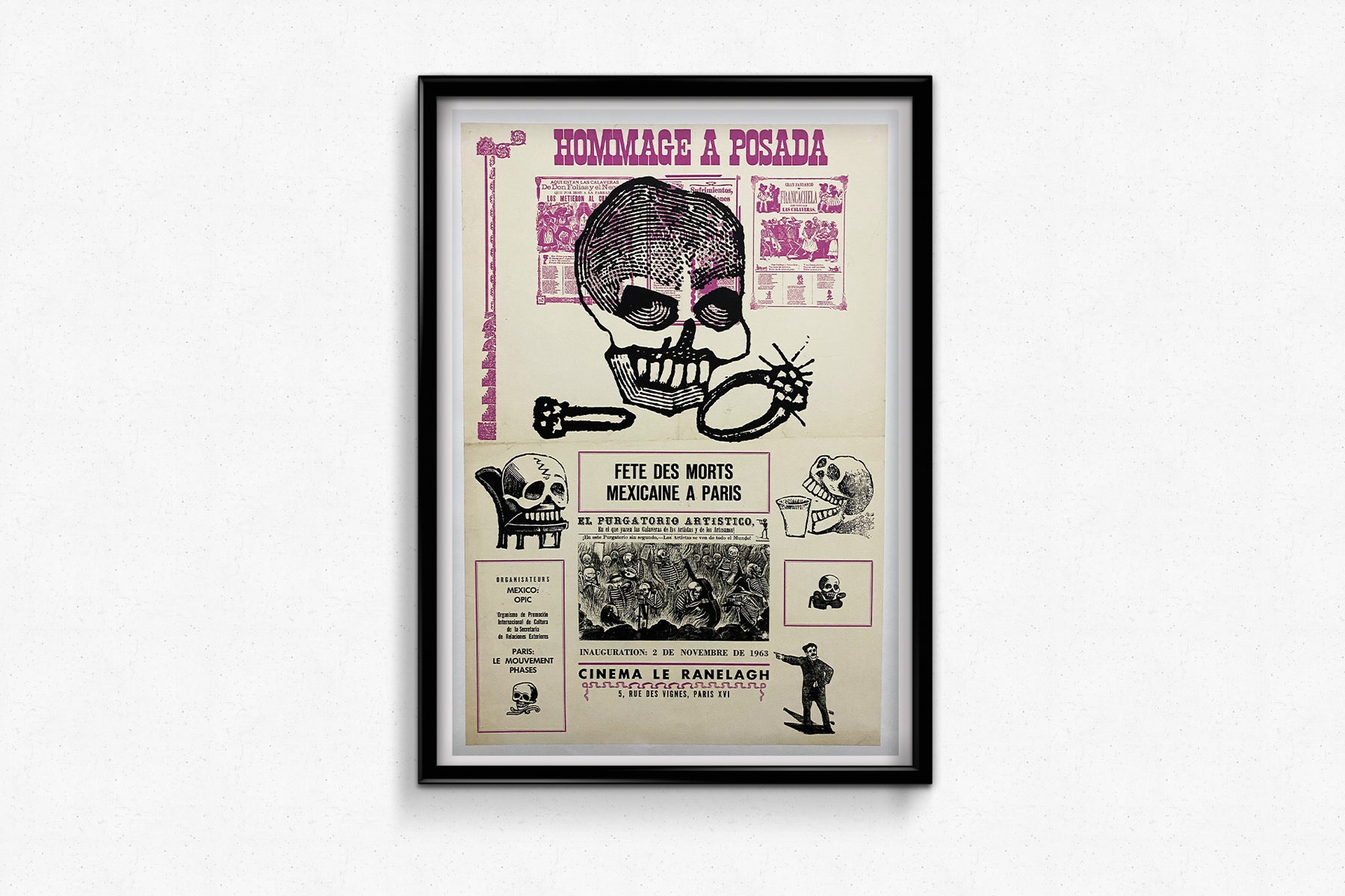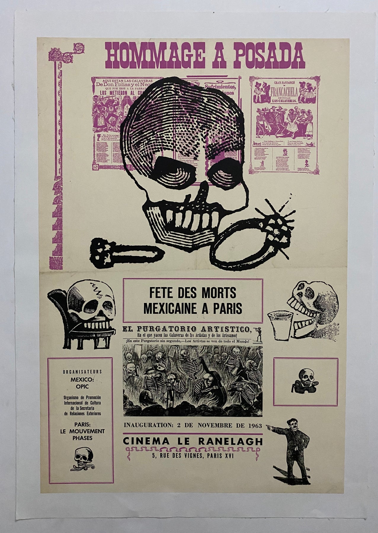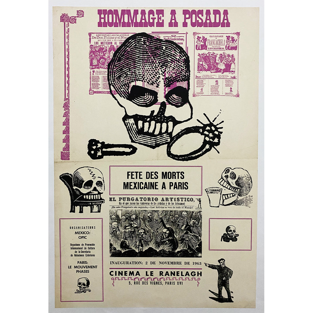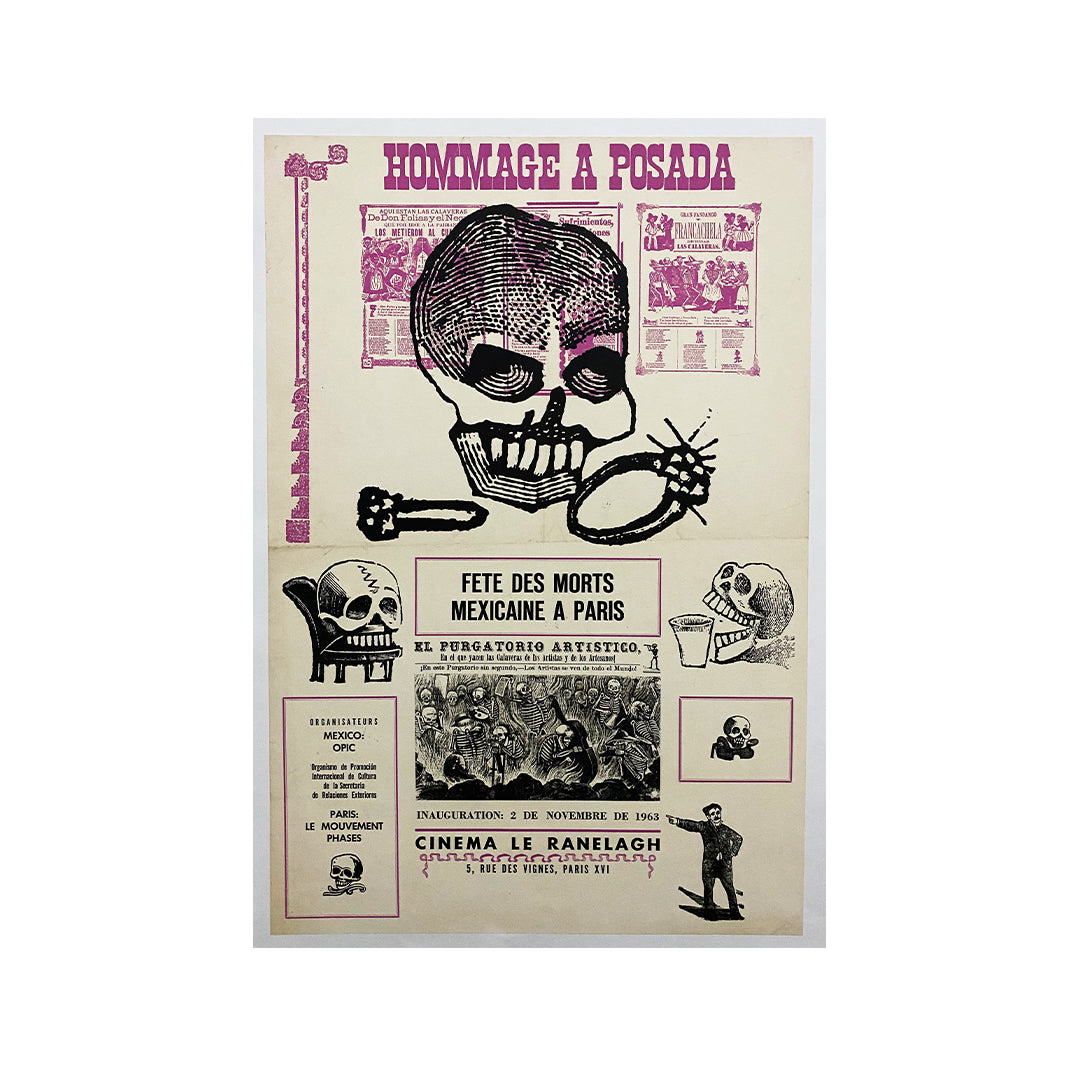 Affiche réalisée en 1963 en hommage à la Posada, la fête mexicaine des morts à Paris.