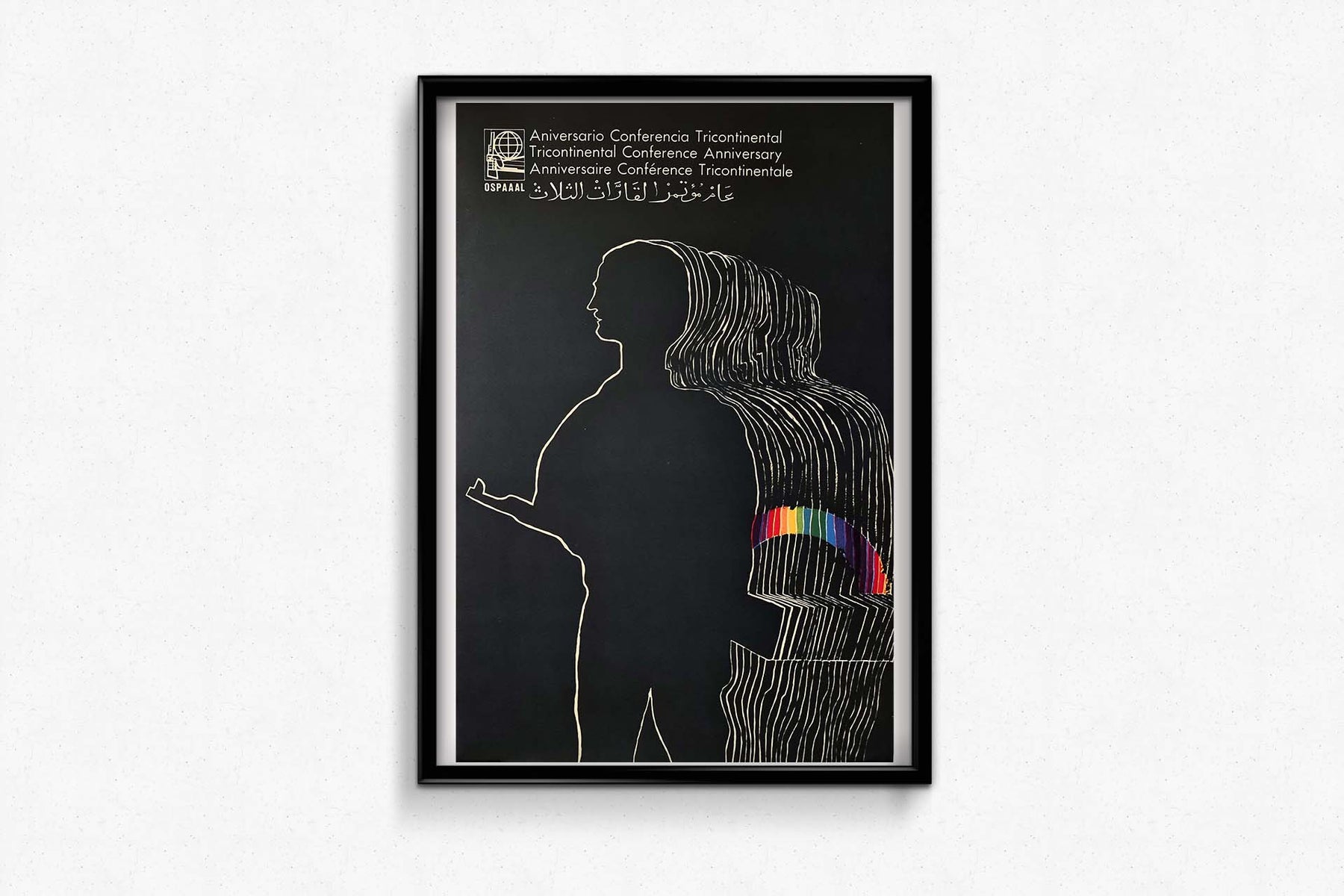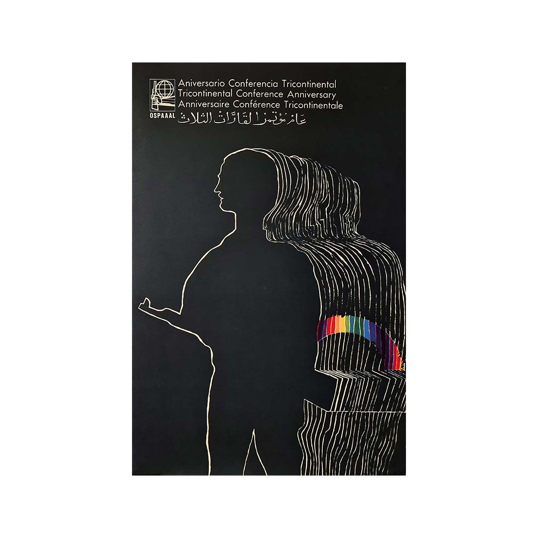 Cette affiche du 5e anniversaire de la Conférence tricontinentale a été créée par Alfredo Rostgaard pour l'OSPAAAL en 1971.