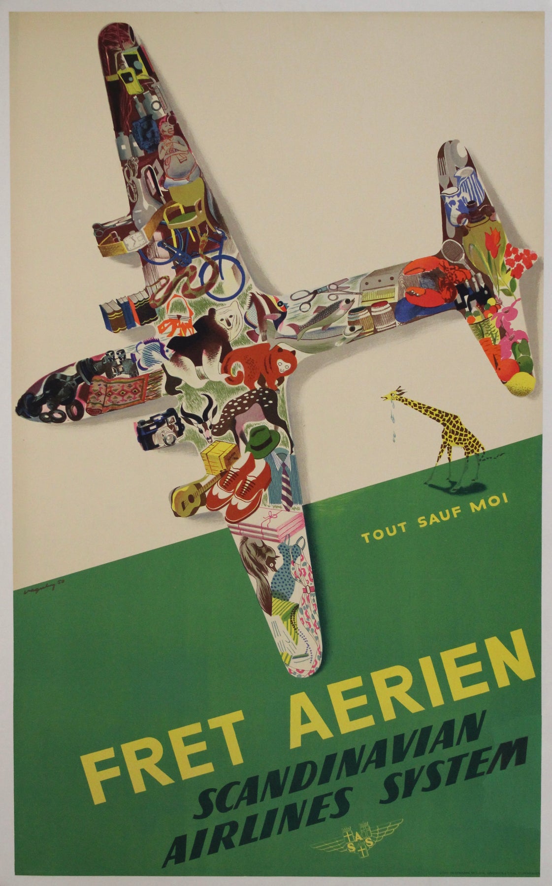 Affiche signée par Vagnby au nom de Scandinavian Airlines System, en Suède SAS AB, une compagnie aérienne scandinave fondée en 1946.