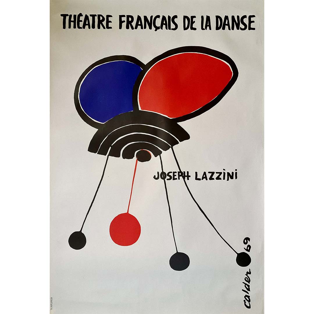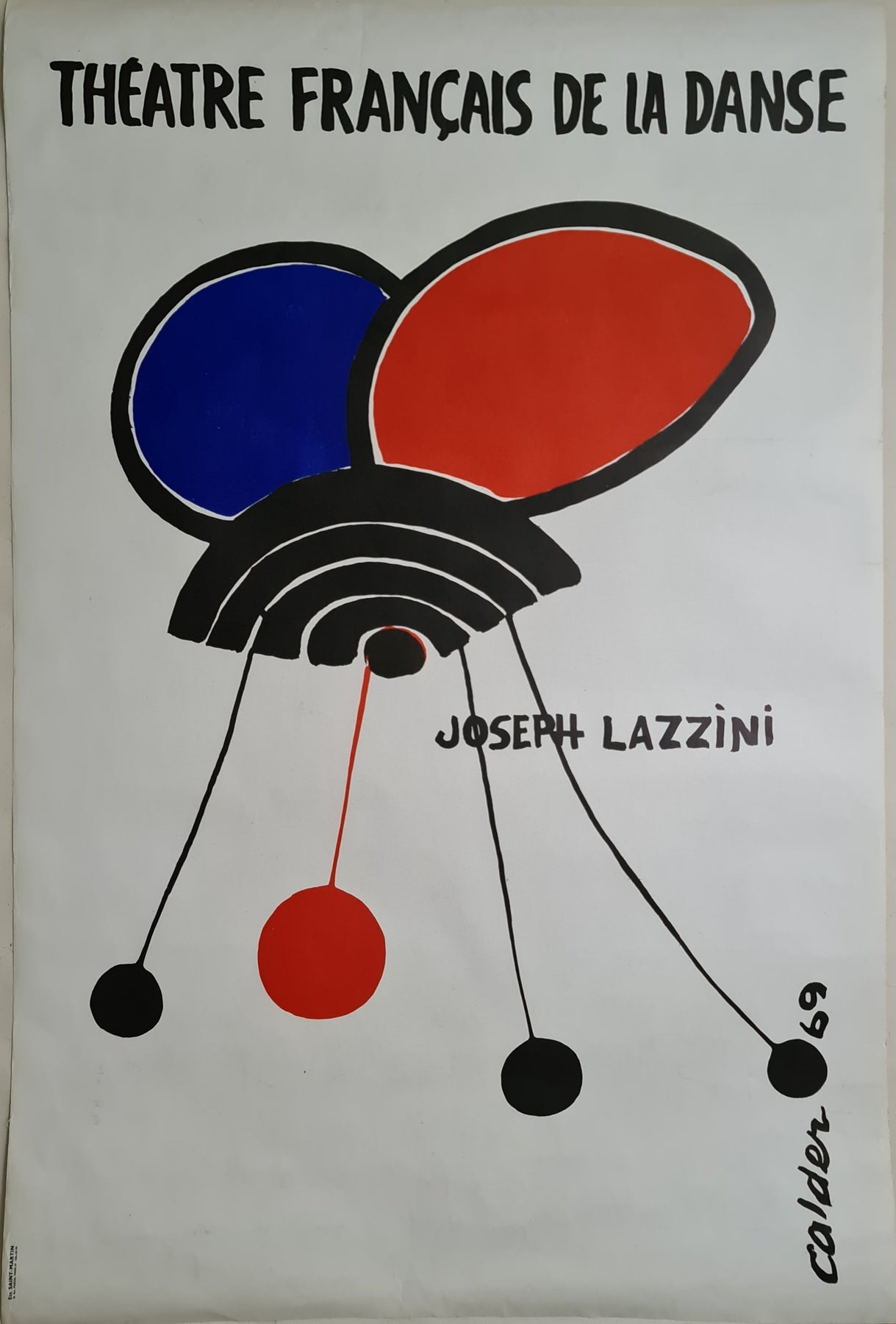 L'affiche originale de l'exposition de Calder au Théâtre Français de la Danse en 1969 témoigne avec éclat de l'esprit novateur de l'artiste et du lieu. Créée par le célèbre sculpteur américain Alexander Calder, cette affiche annonce l'événement et incarne le style et la philosophie artistiques si particuliers de l'artiste.