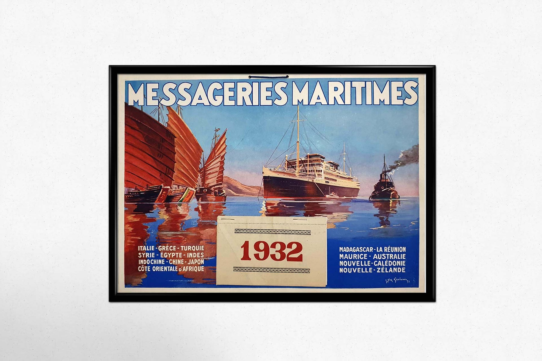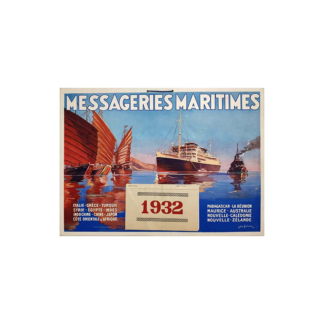 Une magnifique couverture de calendrier pour l'année 1932, réalisée par Jean Des Gachons, illustrateur pour les Messageries Maritimes.