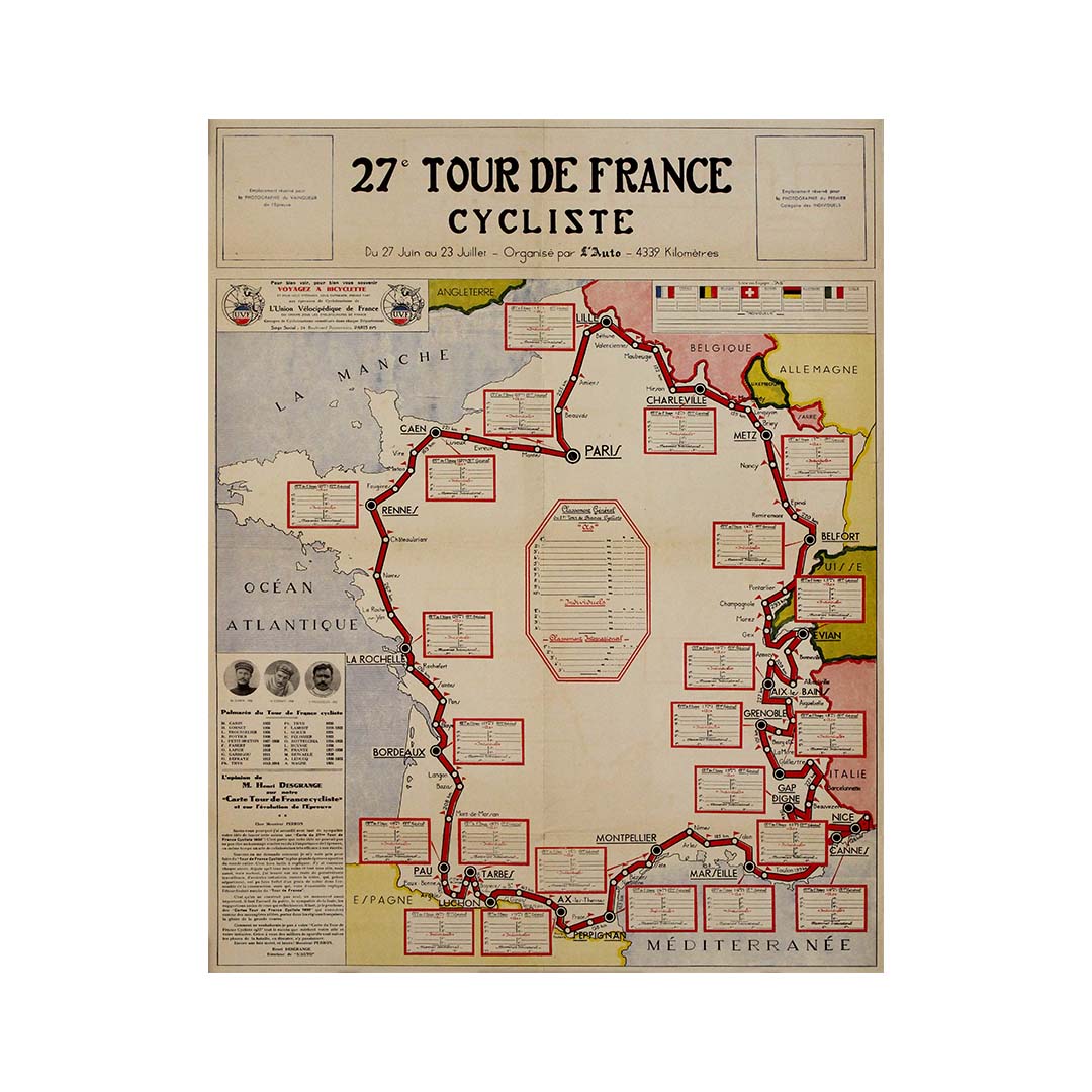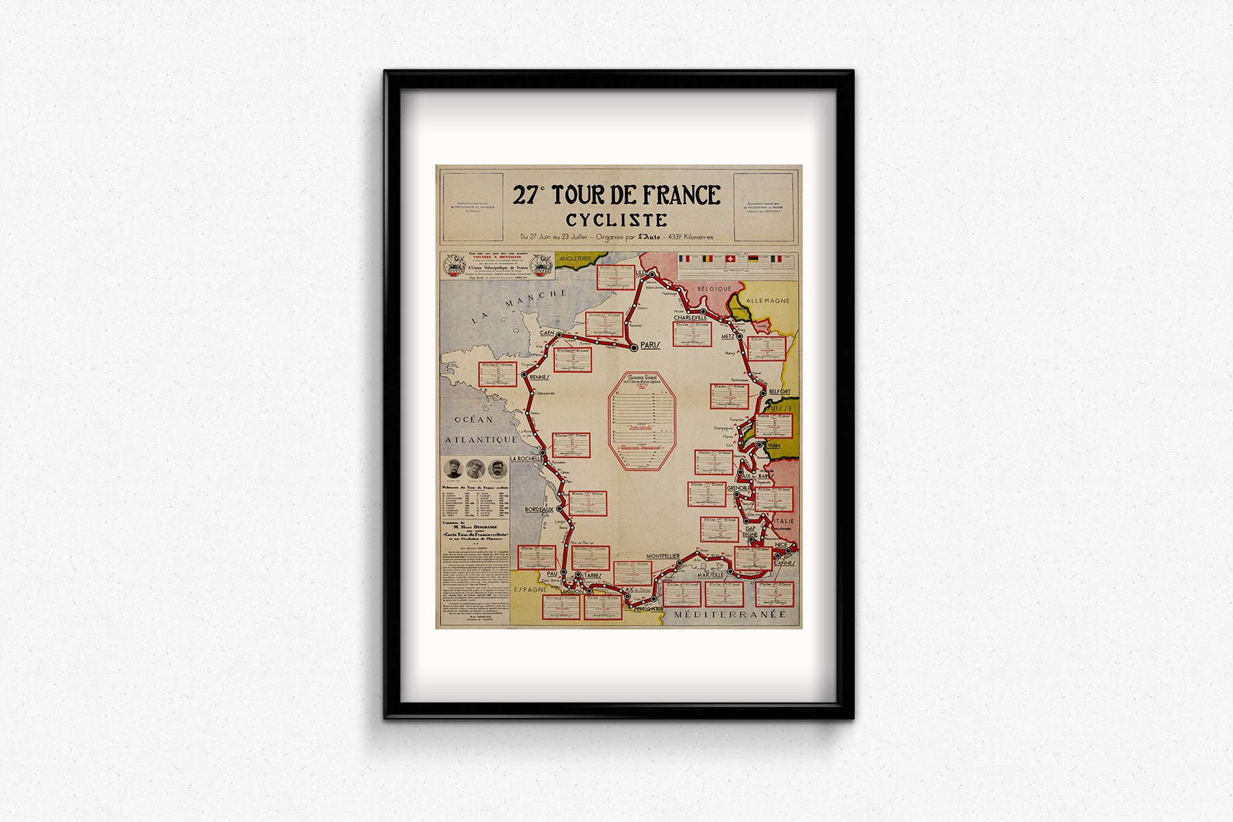 Cette affiche du Tour de France 1933 est bien plus qu'une simple carte : c'est un hommage à l'endurance, à la compétition et à l'esprit d'aventure qui caractérisent le Tour depuis plus d'un siècle.