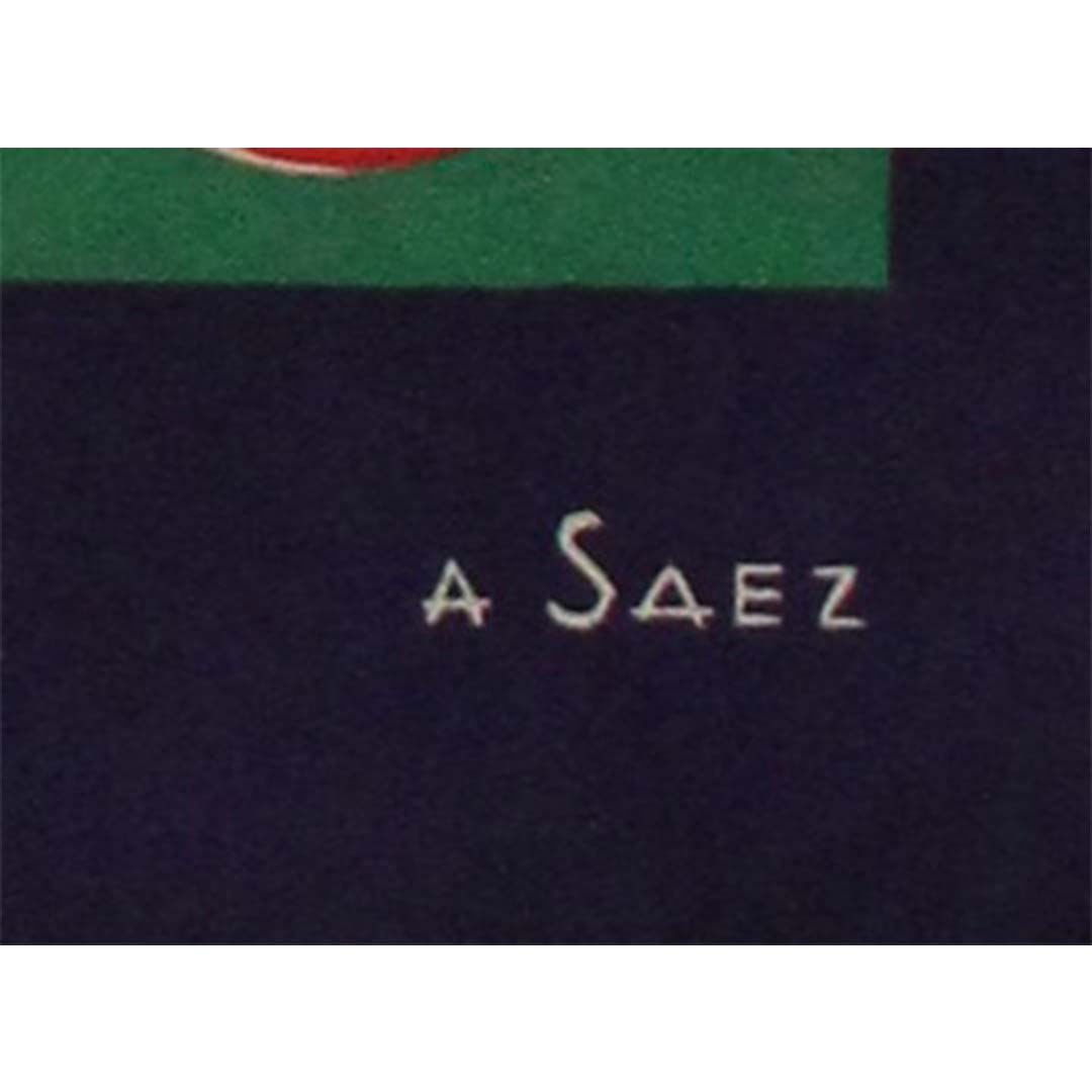 A. Saez, peu connu en dehors des cercles régionaux, apporte à cette œuvre une sensibilité moderniste ludique, mêlant charme populaire et clarté graphique. Il en résulte une affiche à la fois intemporelle et profondément ancrée dans son époque : évoquant le langage graphique optimiste des années 1960 tout en s’enracinant fermement dans l’identité et la célébration basques.