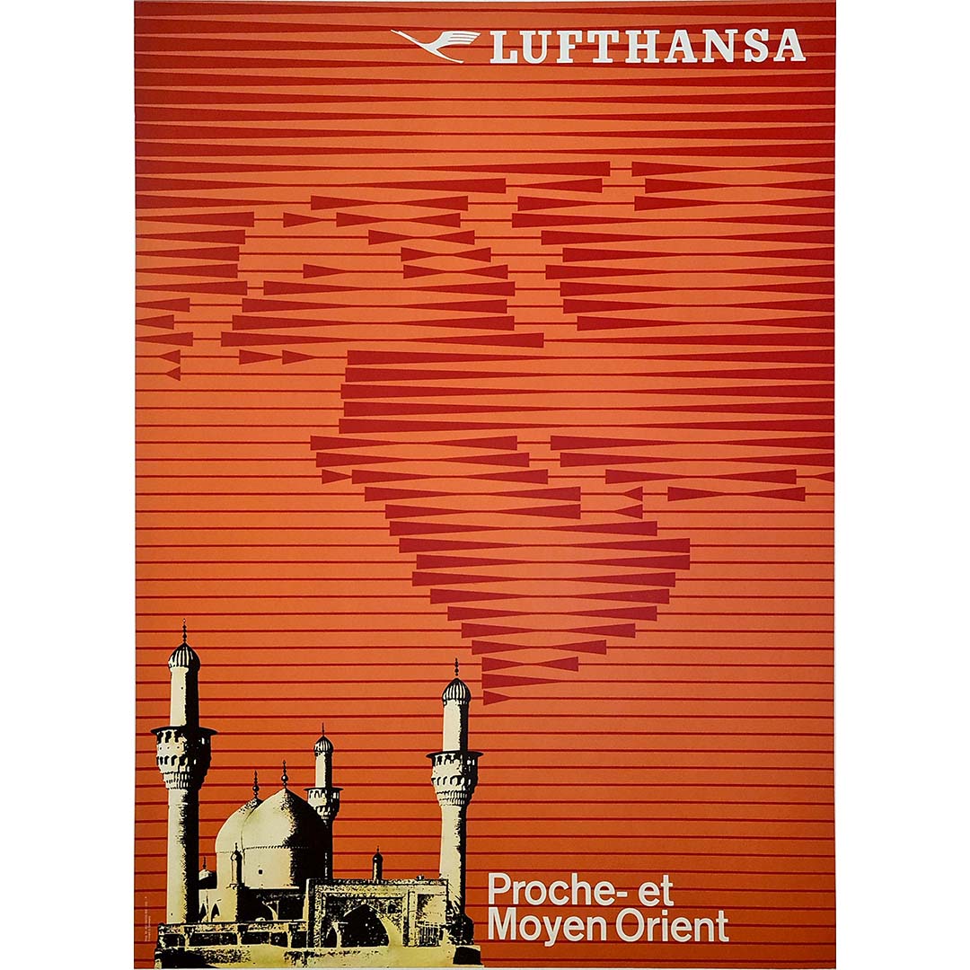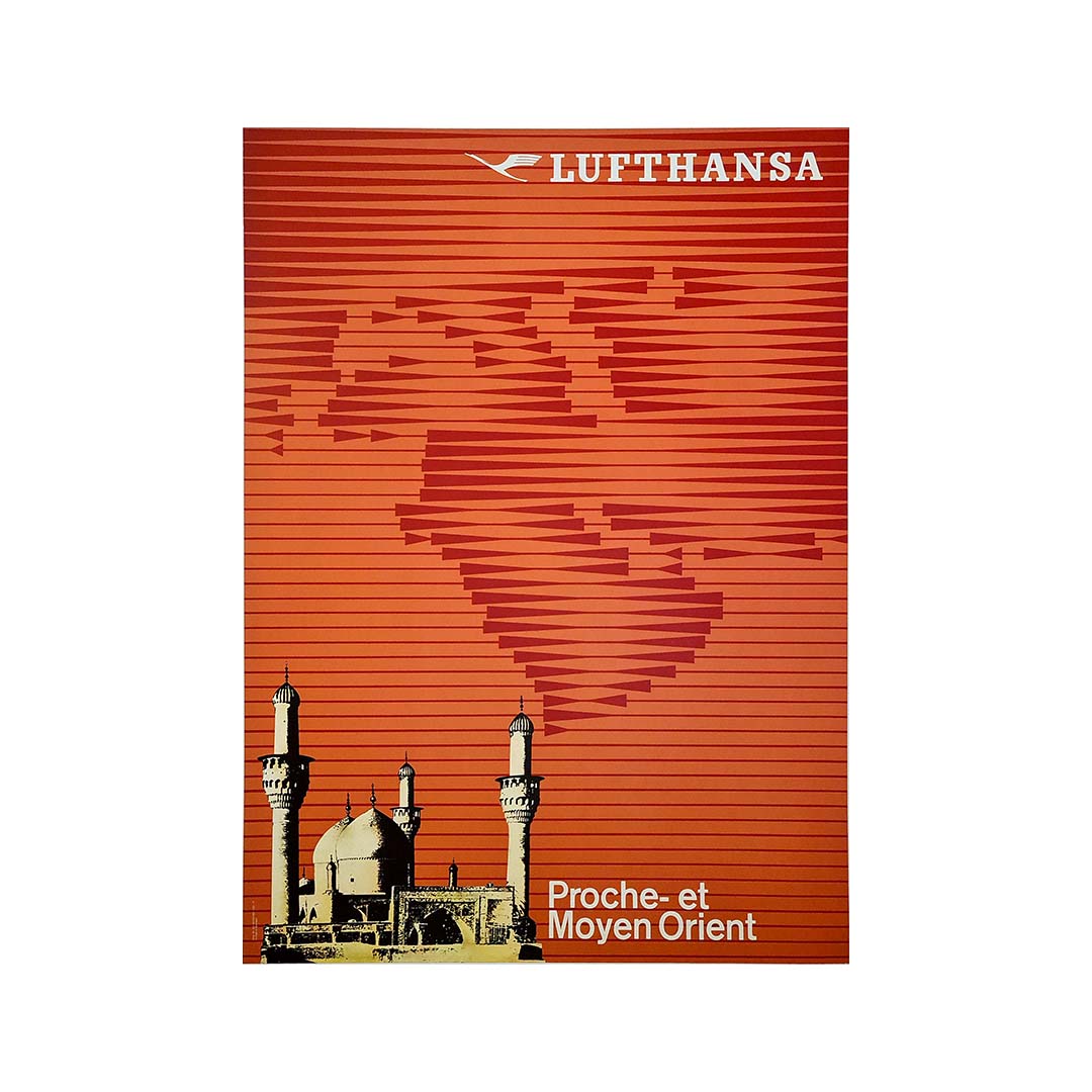 Magnifique affiche des années 50 pour Lufthansa et ses voyages au Moyen-Orient.