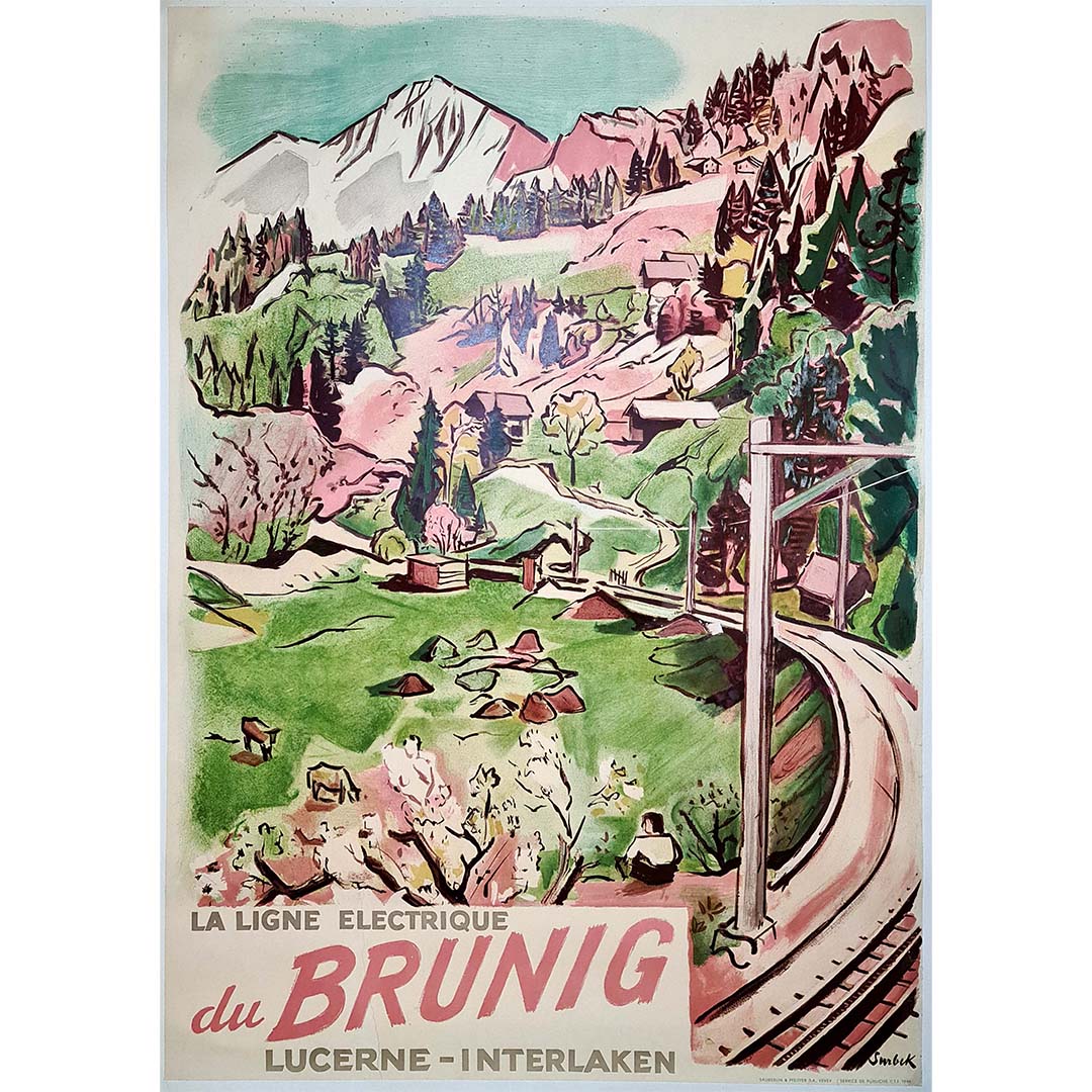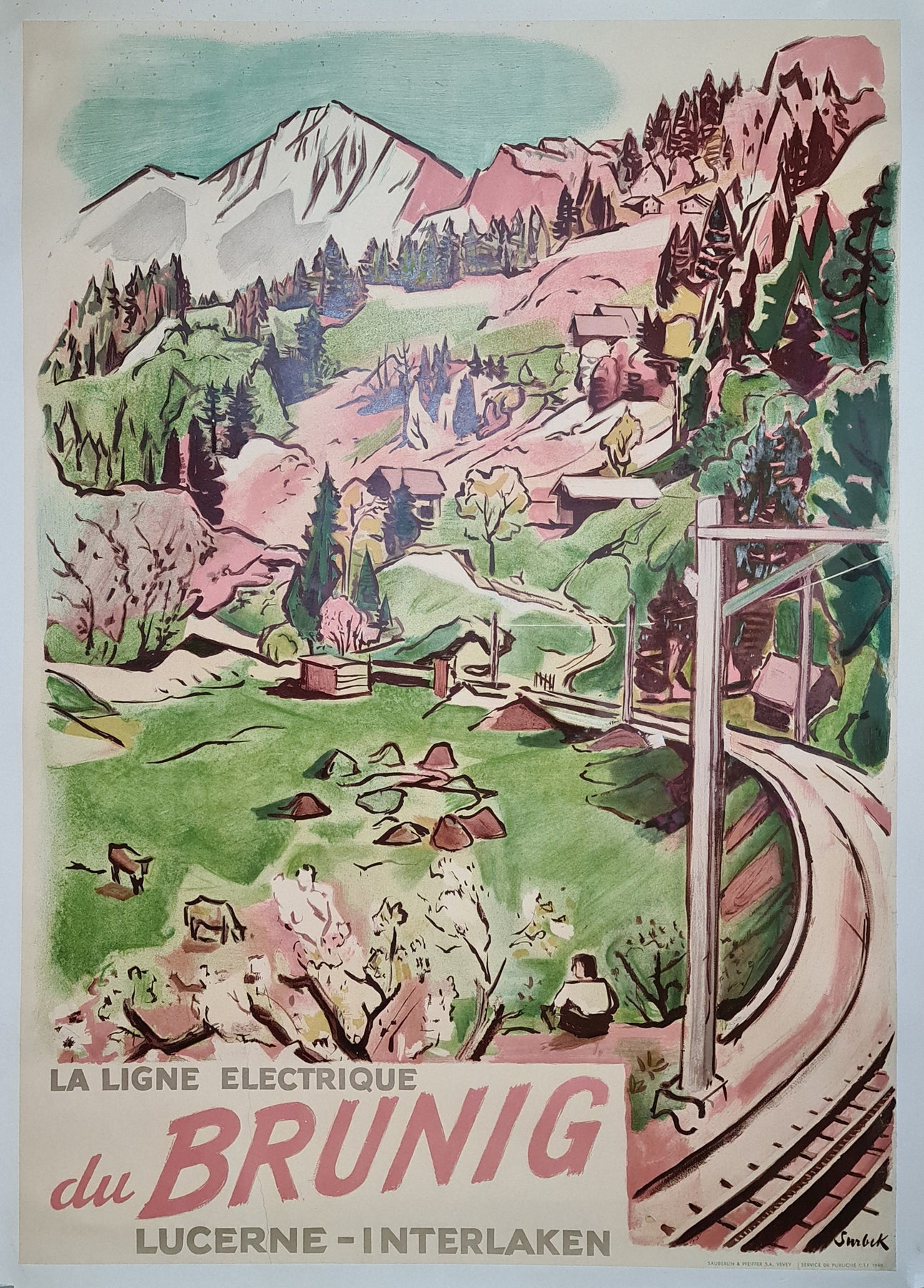 Victor Surbek, artiste suisse de renom, a laissé une empreinte indélébile avec son affiche de 1948 représentant la « Ligne Électrique du Brunig » reliant Lucerne à Interlaken. Ce chef-d'œuvre d'époque commémore non seulement un moment charnière de l'histoire ferroviaire suisse, mais témoigne également du génie artistique de Surbek.