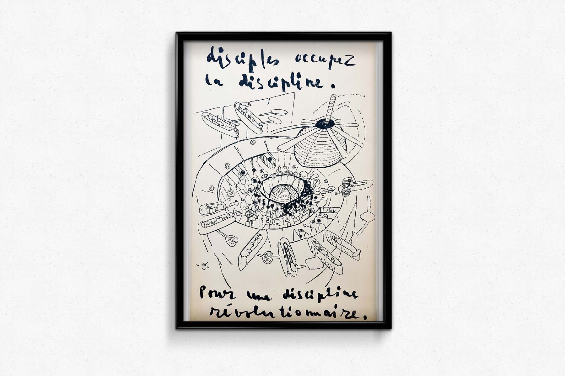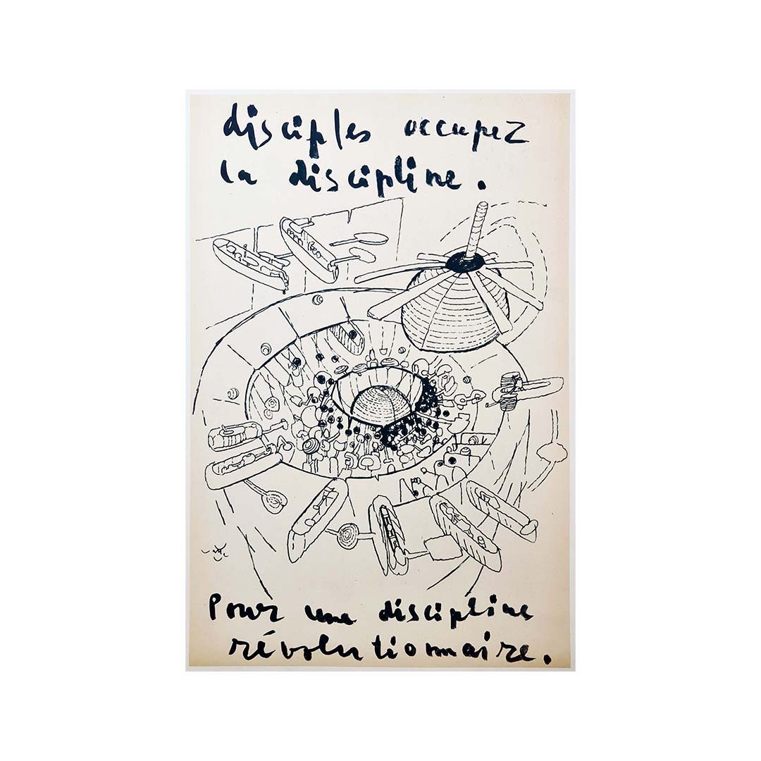 Affiche originale de Roberto Matta, créée en mai 1968, avec le slogan : Les disciples occupent la discipline. Pour une discipline révolutionnaire.