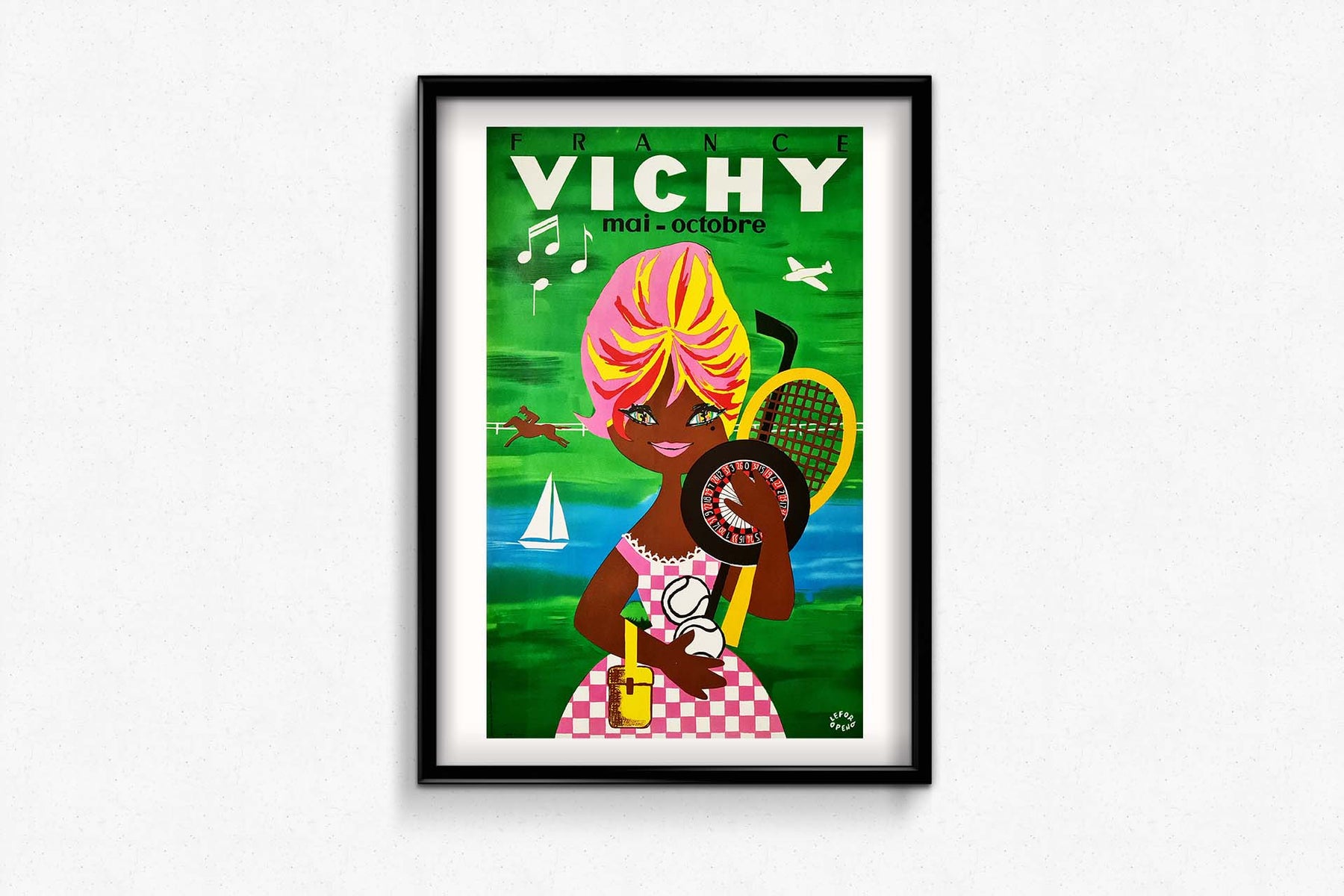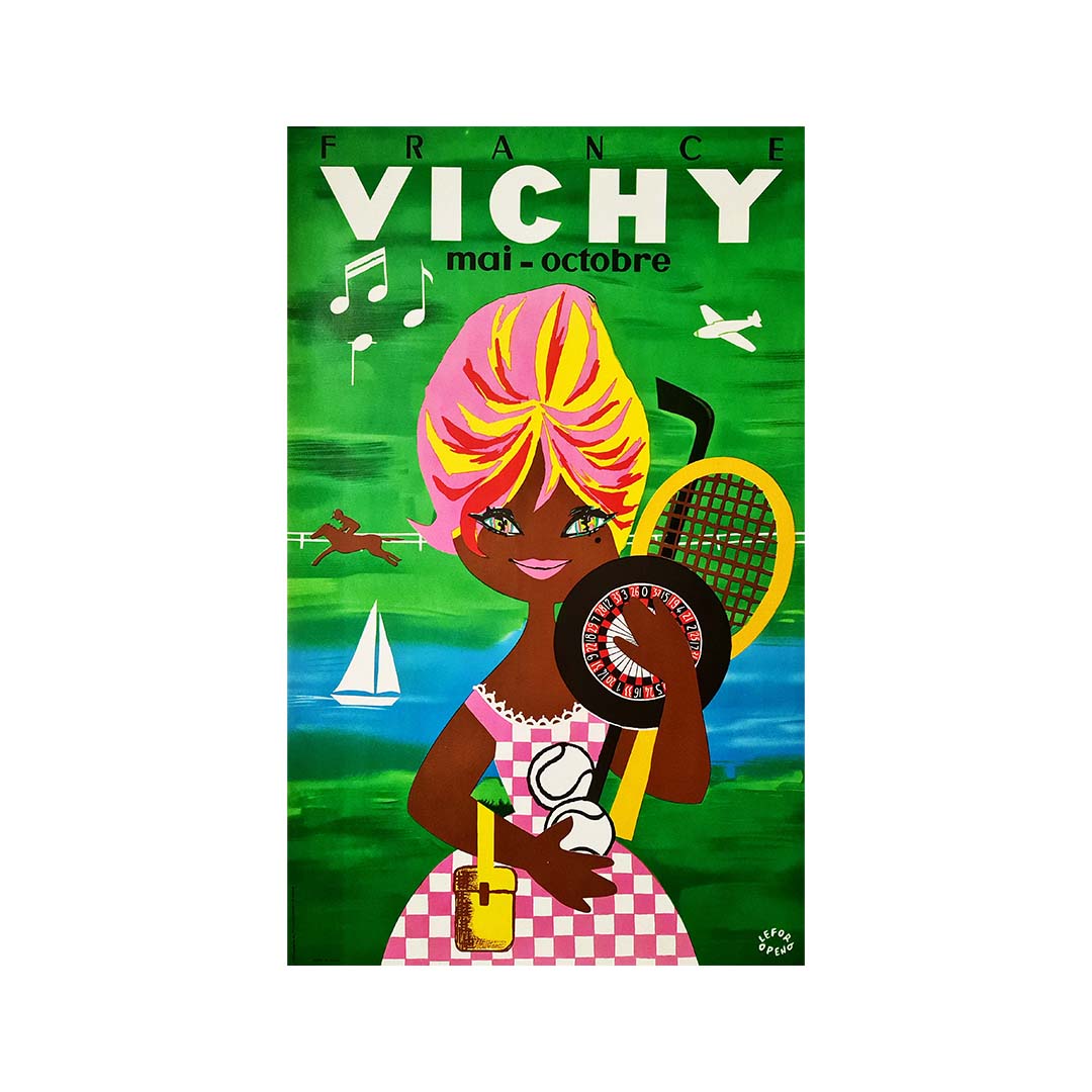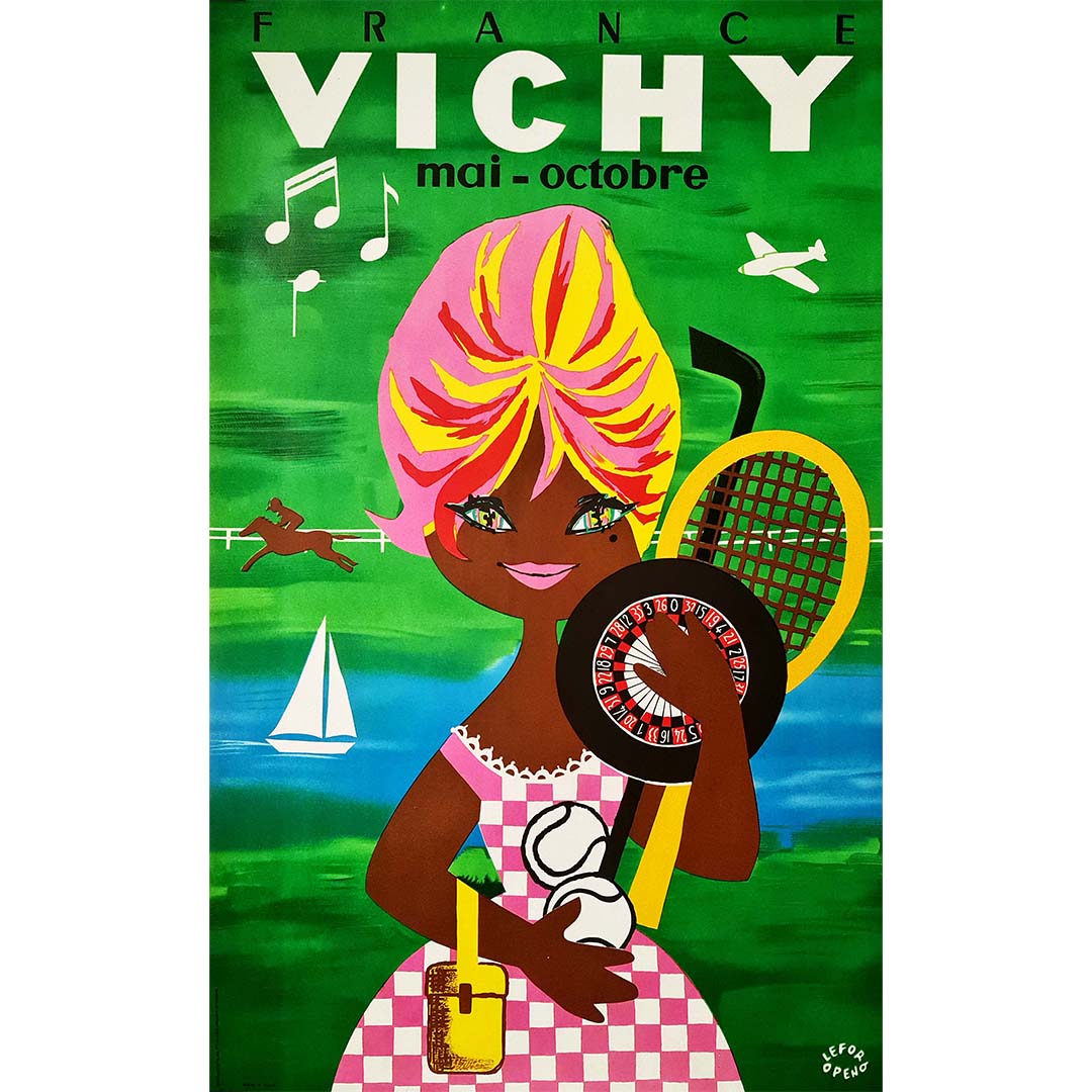 Une affiche réalisée par Lefor Openo (Marie Claire Lefort & Marie Oppeneau) vers 1960 pour promouvoir le tourisme dans la région de Vichy.