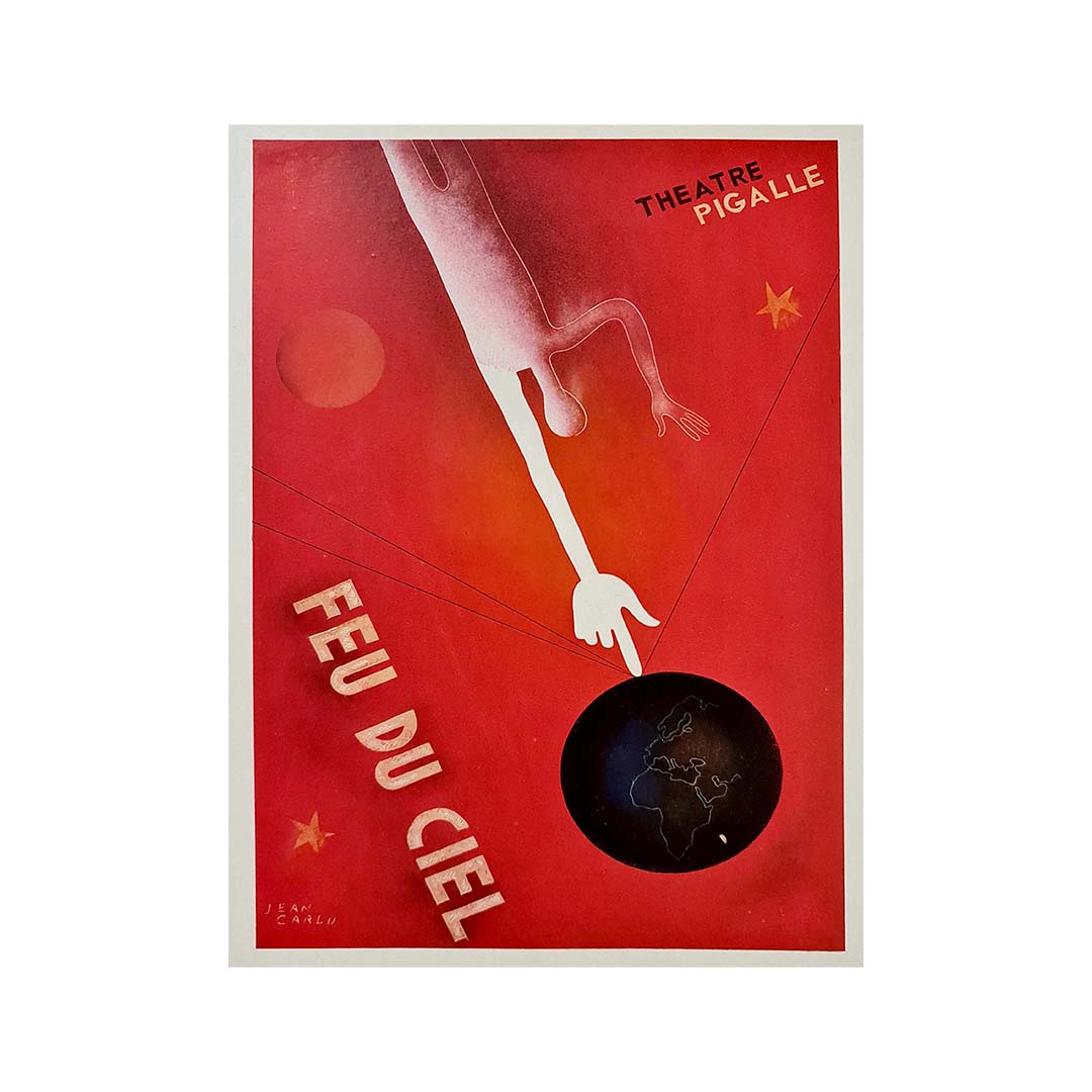 Belle affiche de style Art Déco de Jean Carlu pour le Théâtre Pigalle - Feu du ciel.