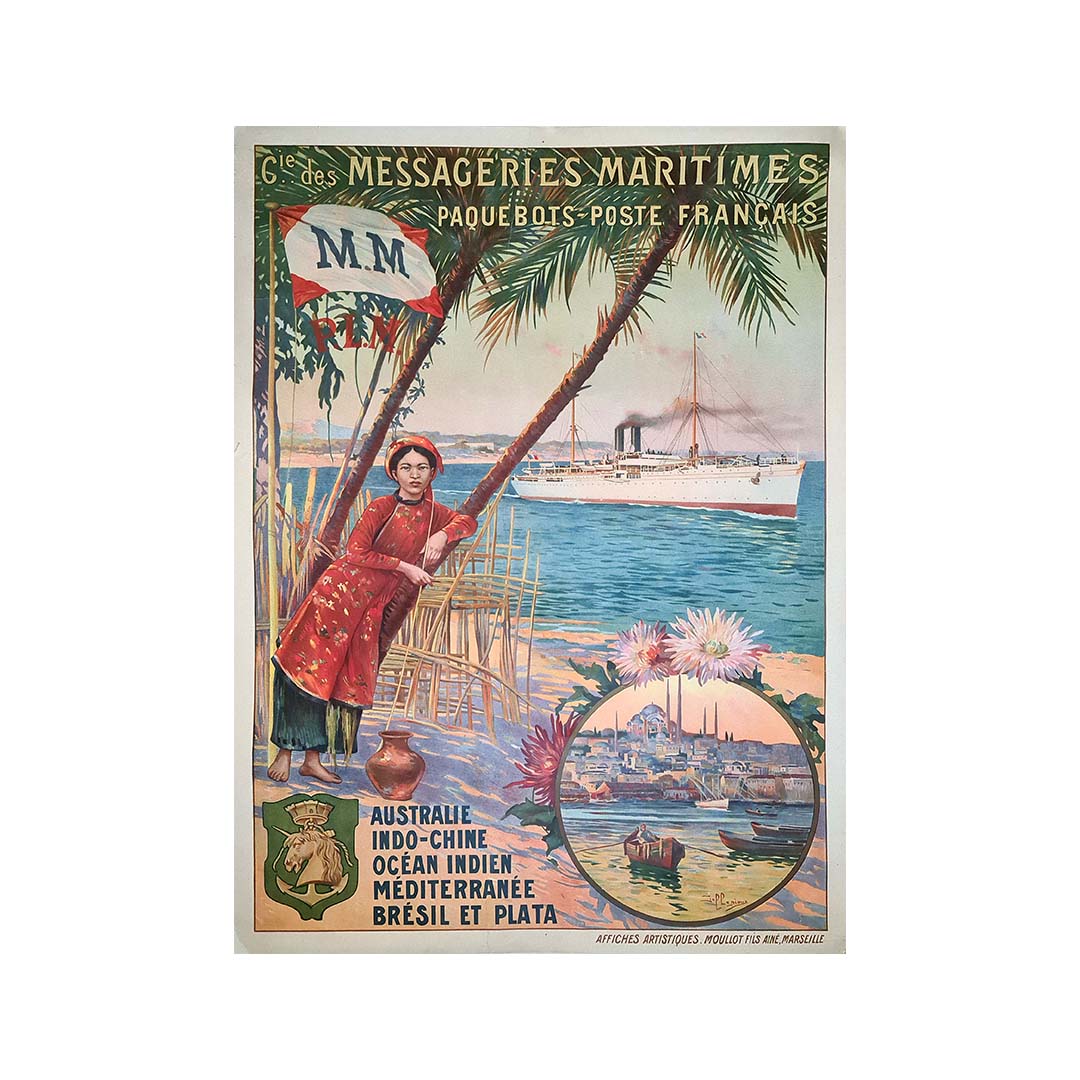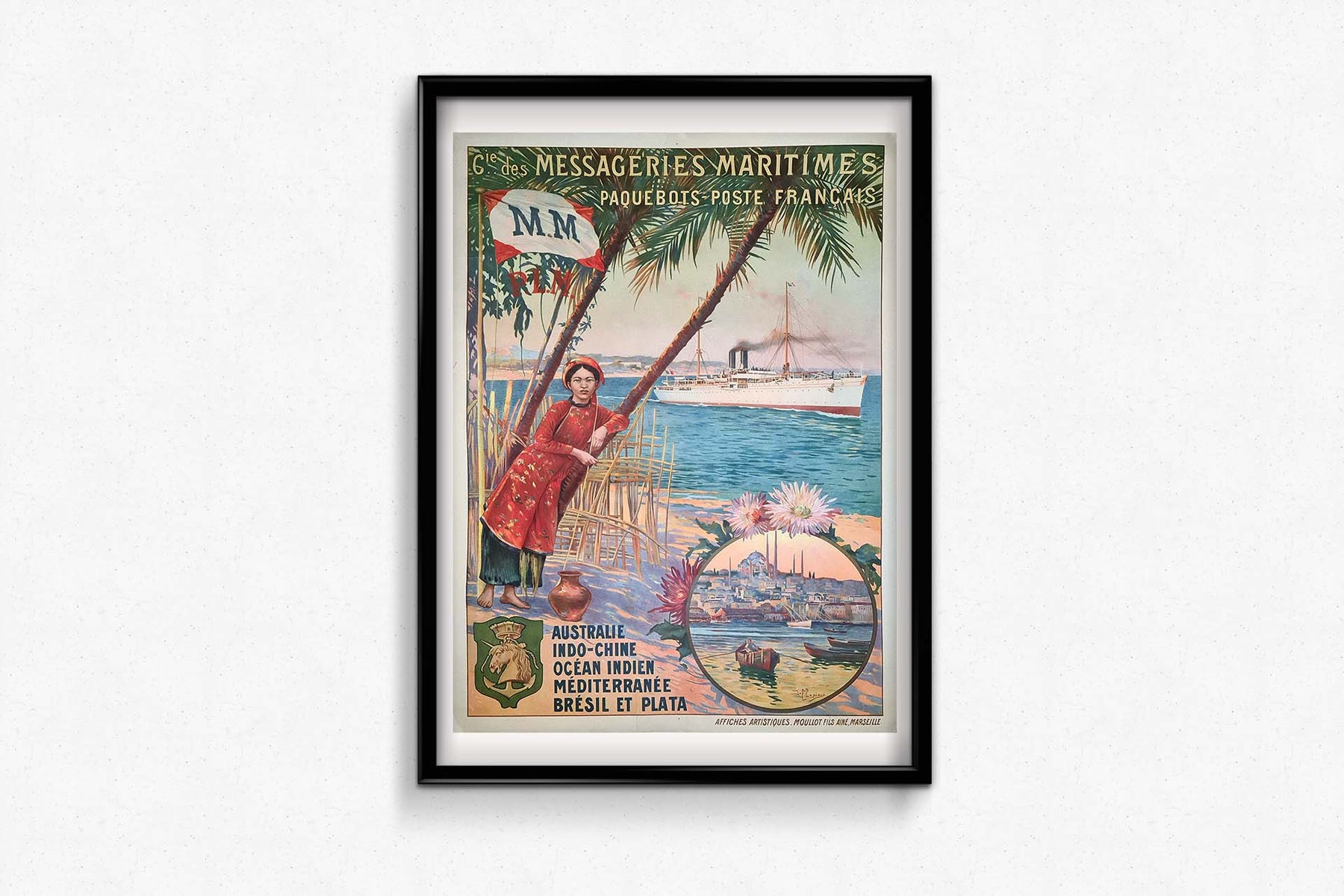 Aujourd'hui, l'affiche Dellepiane pour la Cie des Messageries Maritimes témoigne de l'attrait intemporel des affiches anciennes. Elle nous transporte à une époque où le monde était vaste, inexploré et regorgeait de possibilités. Elle nous rappelle que, même à l'ère du numérique et de son rythme effréné, le romantisme du voyage demeure et que le charme d'une époque révolue peut encore captiver nos cœurs et notre imagination.
