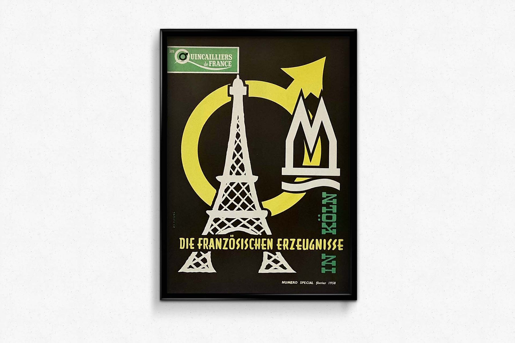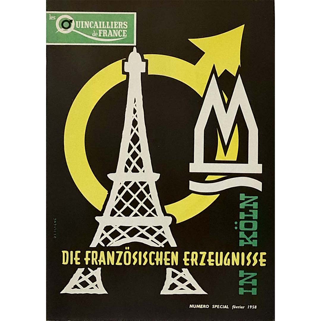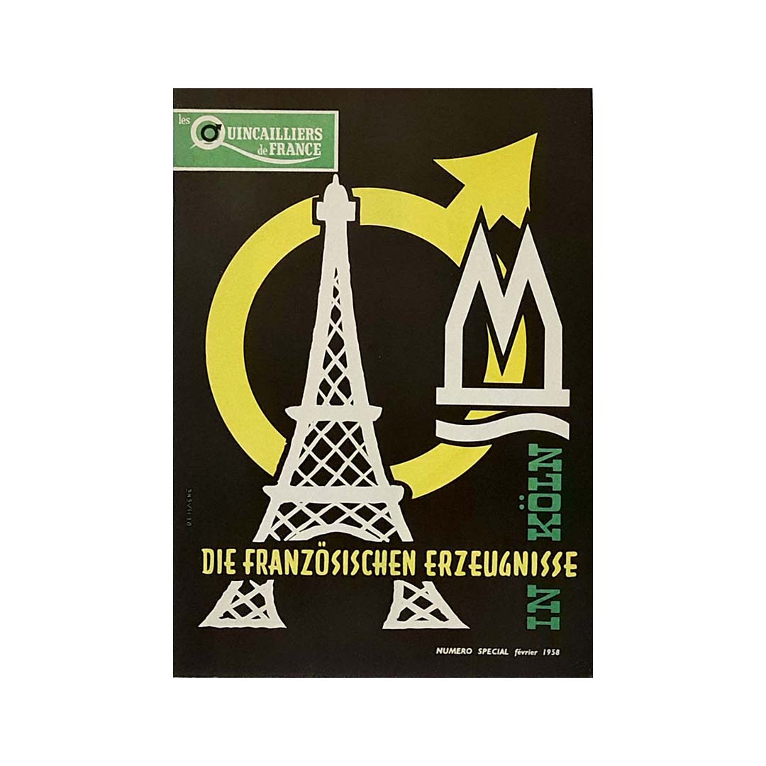 Magnifique affiche des quincailliers français de 1958. La tour Eiffel y est représentée.
