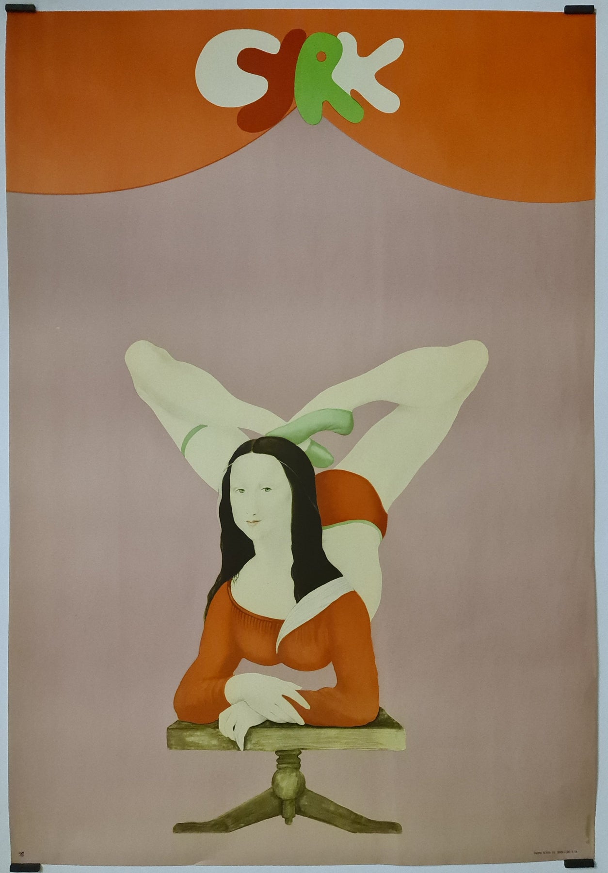 Prix régulier €600,00L'affiche originale de 1972 « Cyrk - Mona Lisa » d'Urbanieo est un exemple frappant de l'art affichable, vibrant et imaginatif, produit durant l'âge d'or des affiches de cirque polonaises, connues sous le nom d'affiches Cyrk. Créées des années 1960 aux années 1980, ces affiches sont célèbres pour leurs designs audacieux, surréalistes et souvent fantaisistes, qui alliaient beaux-arts et illustration commerciale pour promouvoir divers spectacles de cirque.