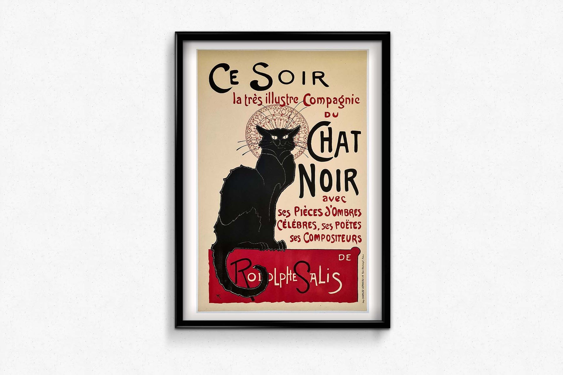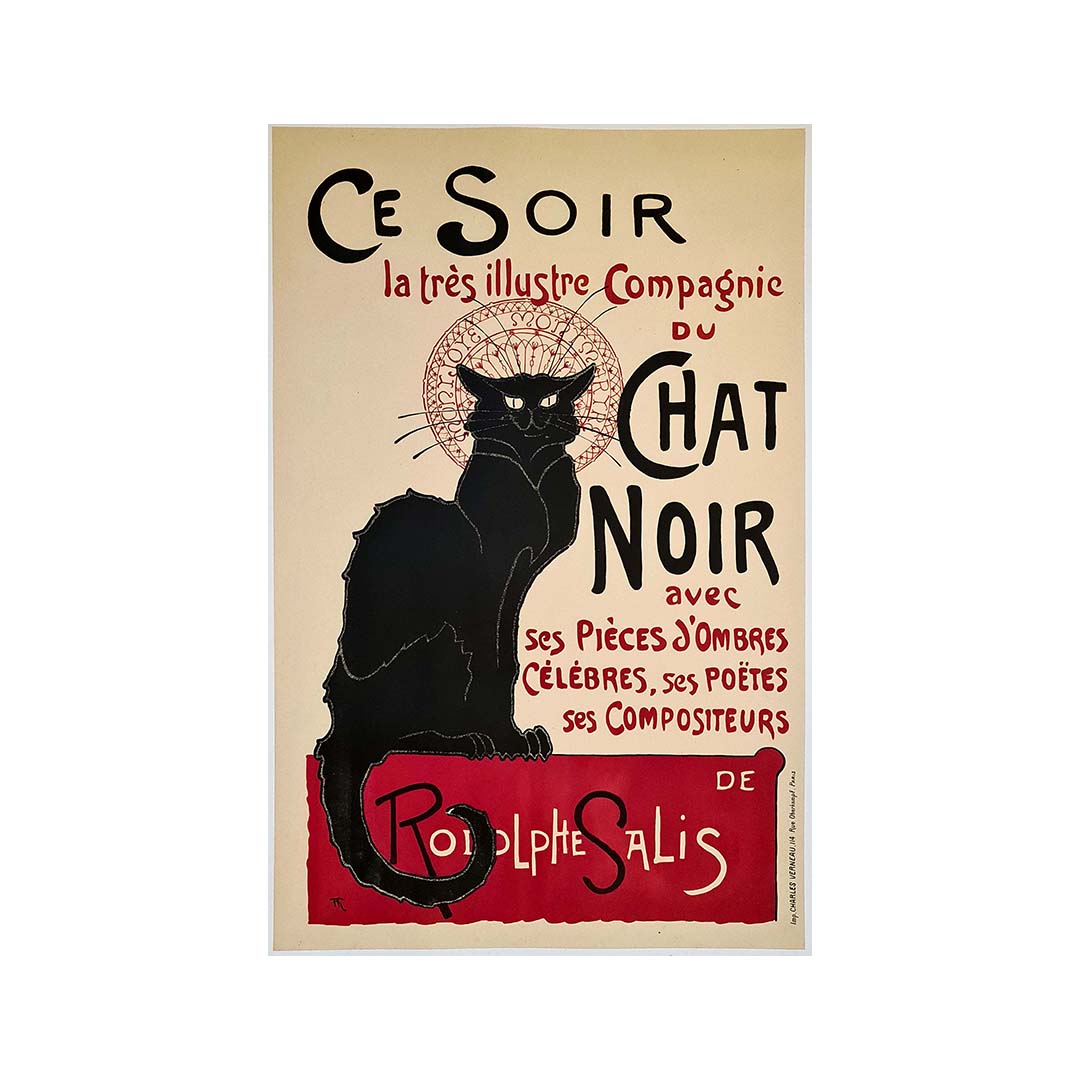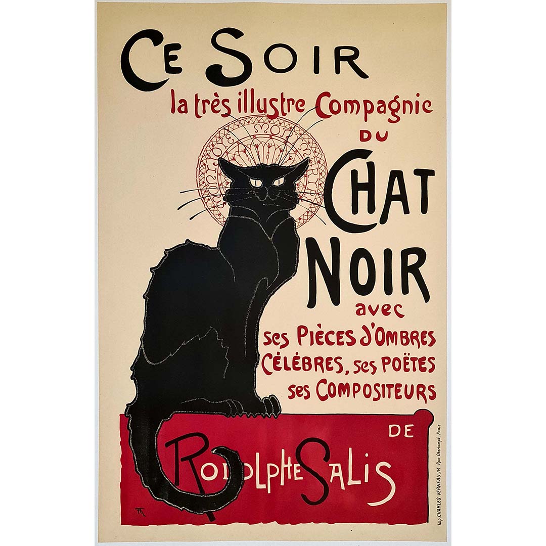 Magnifique affiche originale du peintre suisse Théophile Alexandre Steinlen, réalisée en 1896 pour promouvoir le cabaret parisien Le Chat noir, à Montmartre. Elle mentionne Rodolphe Salis, propriétaire et gérant du cabaret.