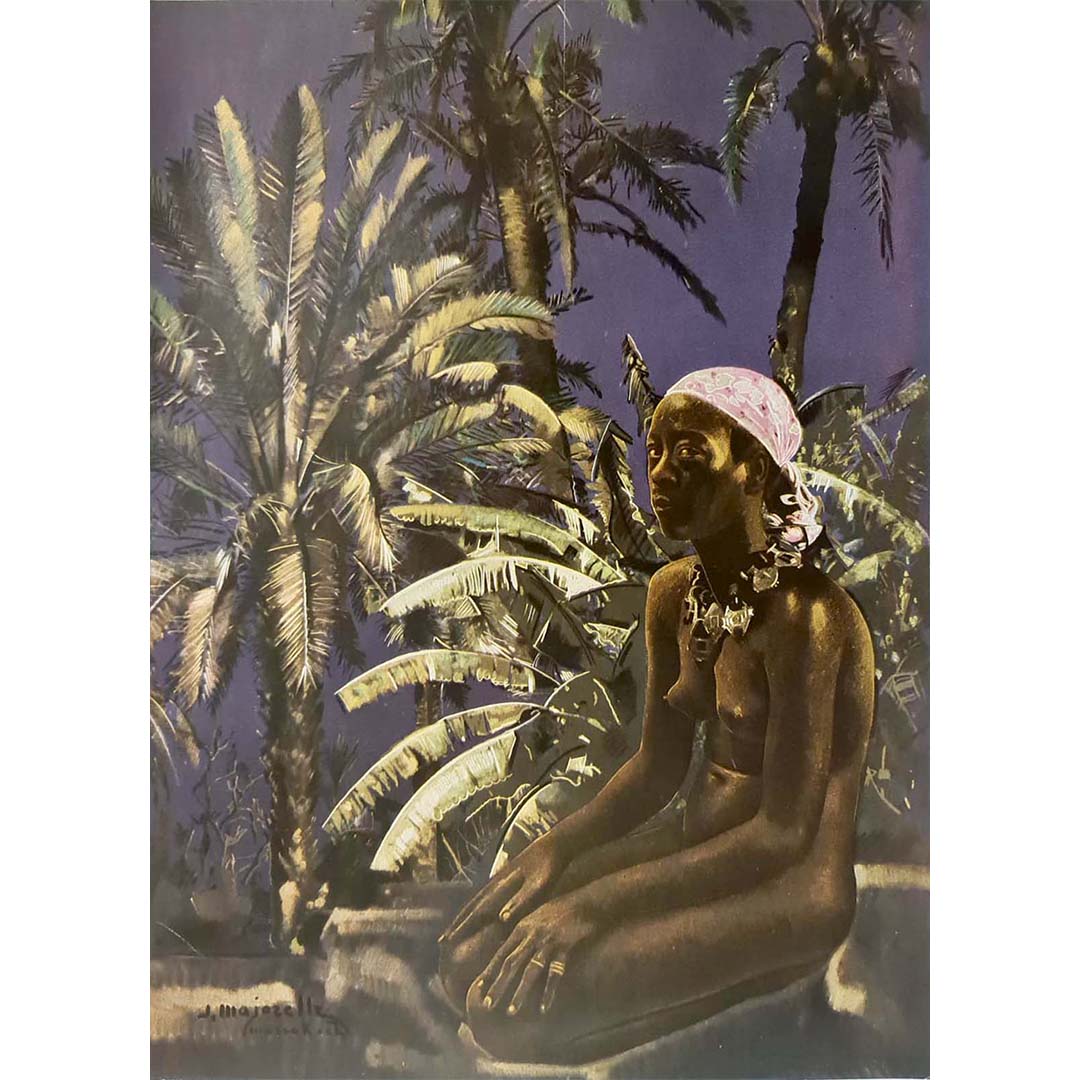 La posture de la femme est à la fois détendue et assurée, comme si elle était profondément liée à la terre et à la nature environnantes. Ses bijoux et parures raffinés témoignent de l'attention que l'artiste portait aux détails de la culture indigène, que Majorelle admirait profondément. Ses œuvres sont souvent saluées pour leurs représentations respectueuses et évocatrices de la vie locale, évitant ainsi certaines images stéréotypées et réductrices fréquemment rencontrées dans les représentations européennes de l'Afrique du Nord durant la période coloniale.