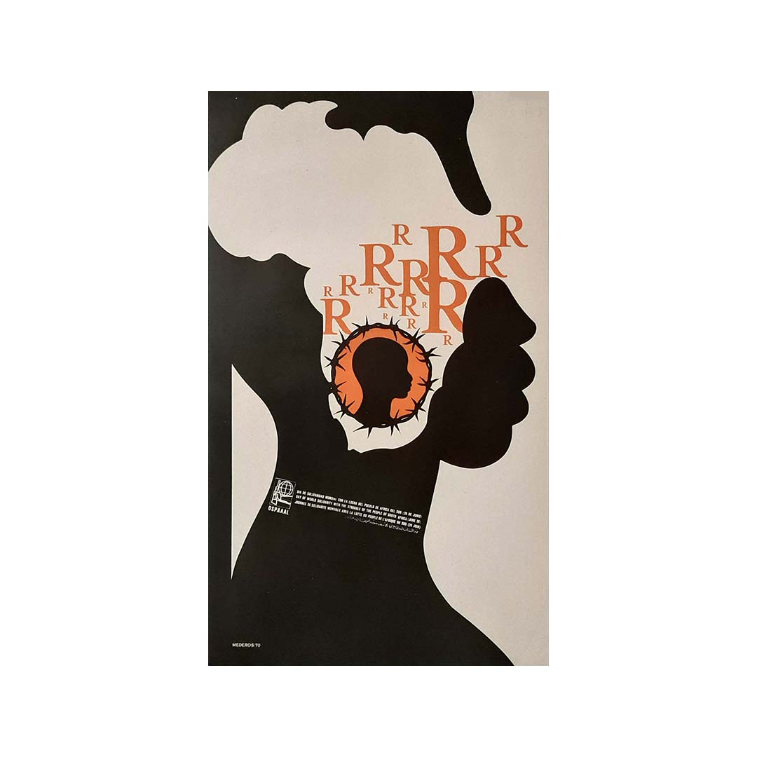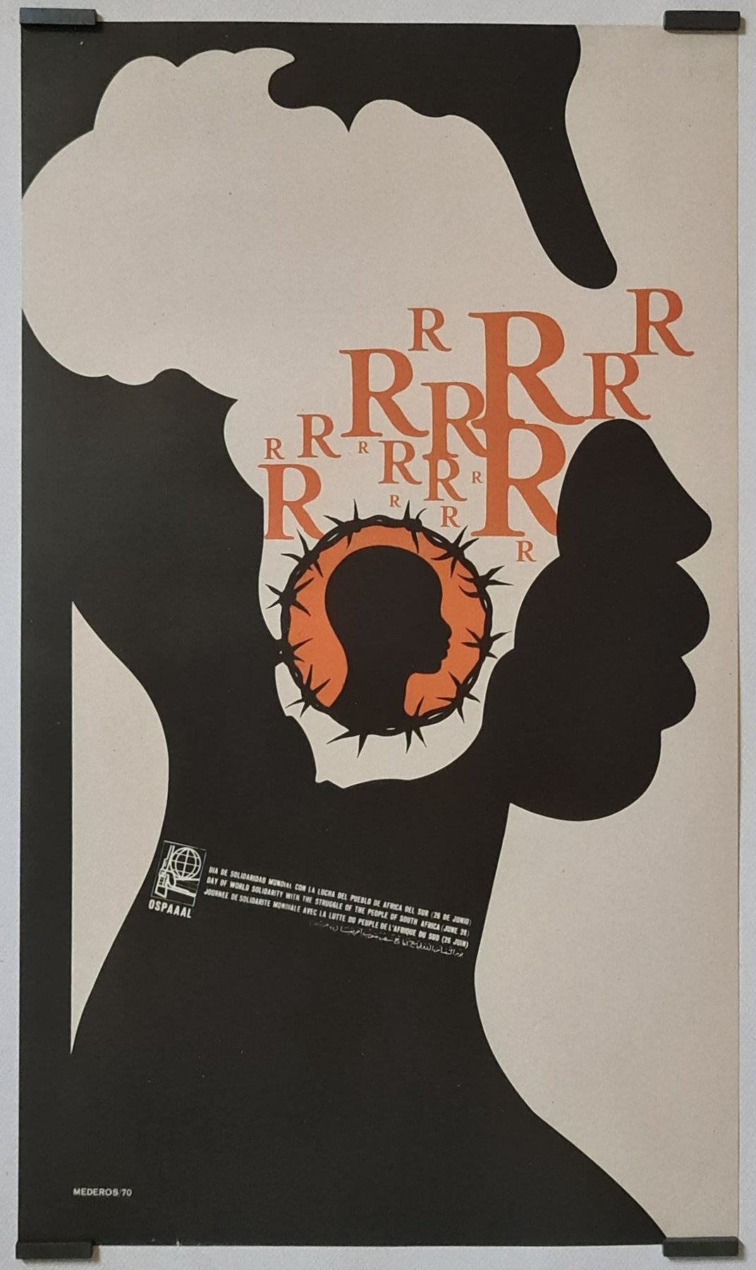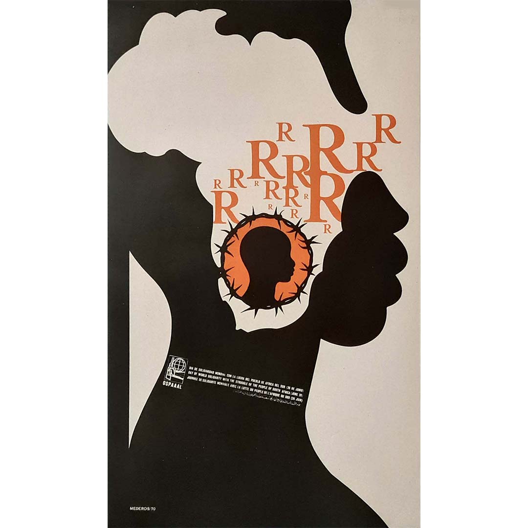 Affiche originale réalisée par Mederos et éditée par OSPAAAL pour la journée de solidarité mondiale avec la lutte du peuple sud-africain (26 juin).