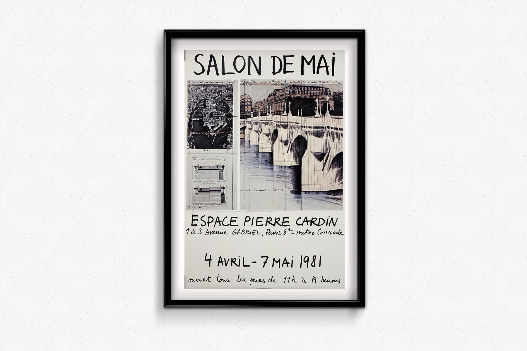 Le Salon de Mai, créé en 1943 comme salon d'art d'avant-garde, constituait une plateforme majeure pour les artistes contemporains. La participation de Christo à l'édition de 1981 a confirmé le rayonnement international et le caractère avant-gardiste de l'événement. Accueillie à l'Espace Pierre Cardin, haut lieu de l'innovation culturelle parisienne, l'exposition était ouverte tous les jours de 11 h à 19 h, attirant aussi bien les amateurs d'art que les collectionneurs.