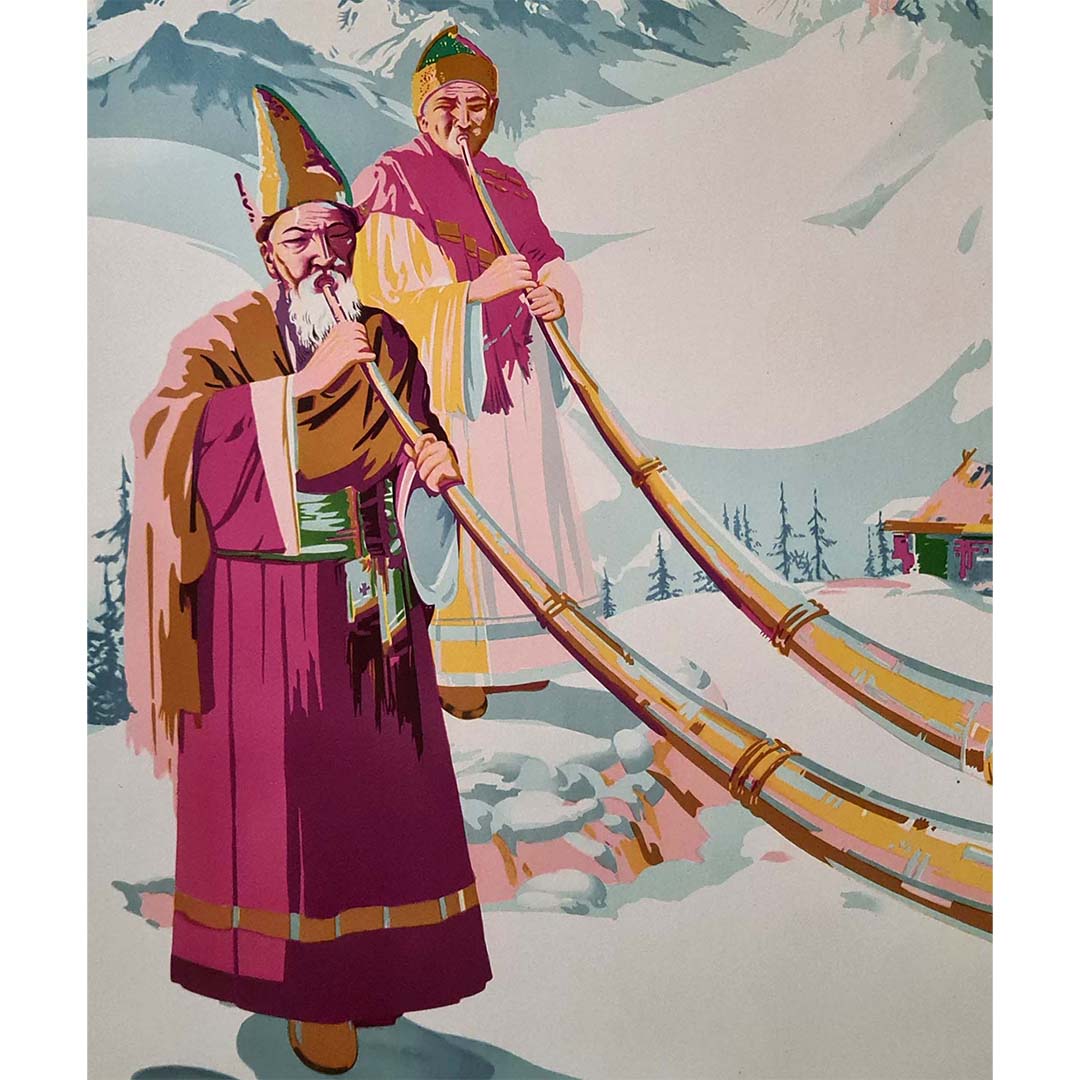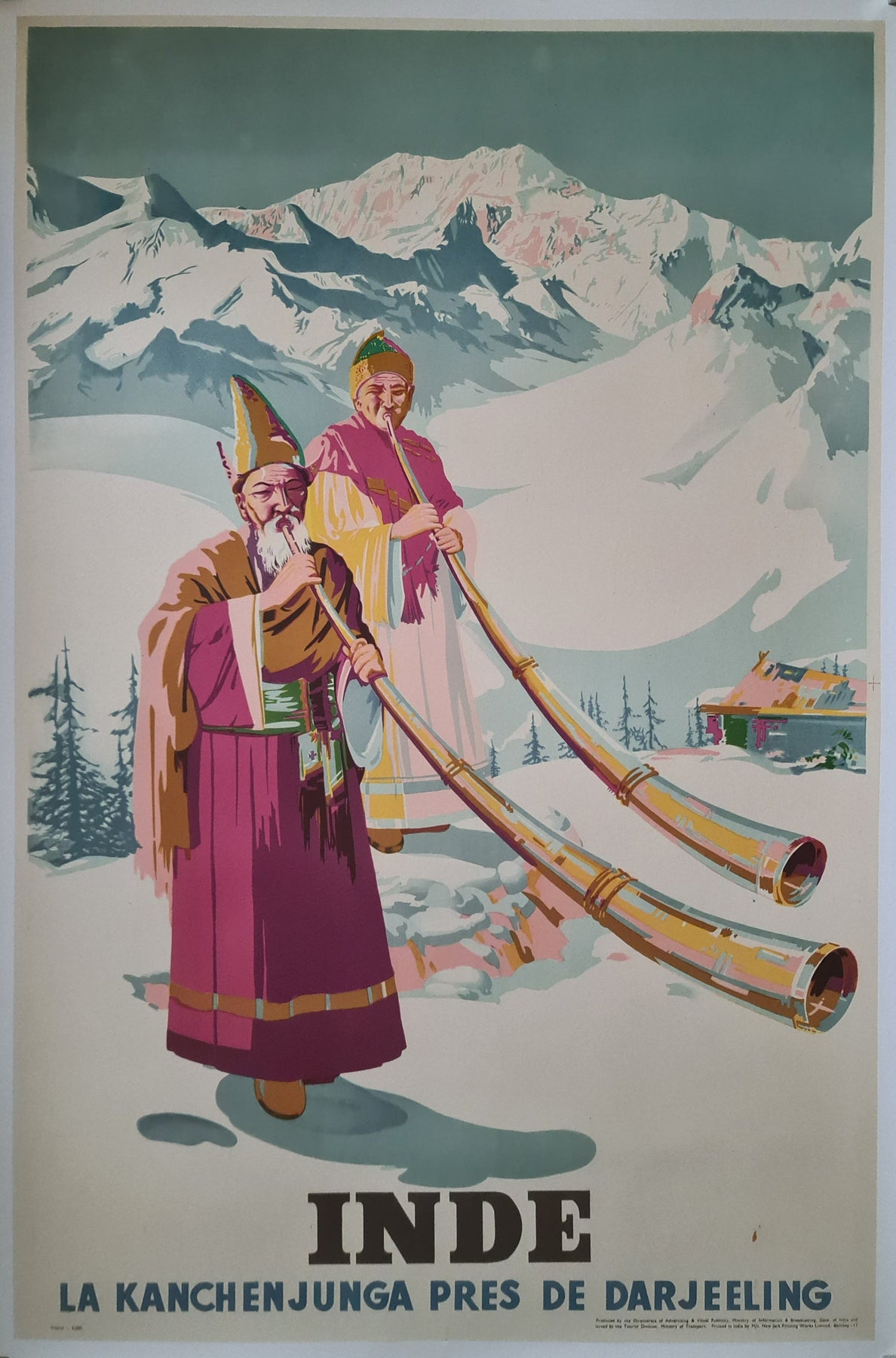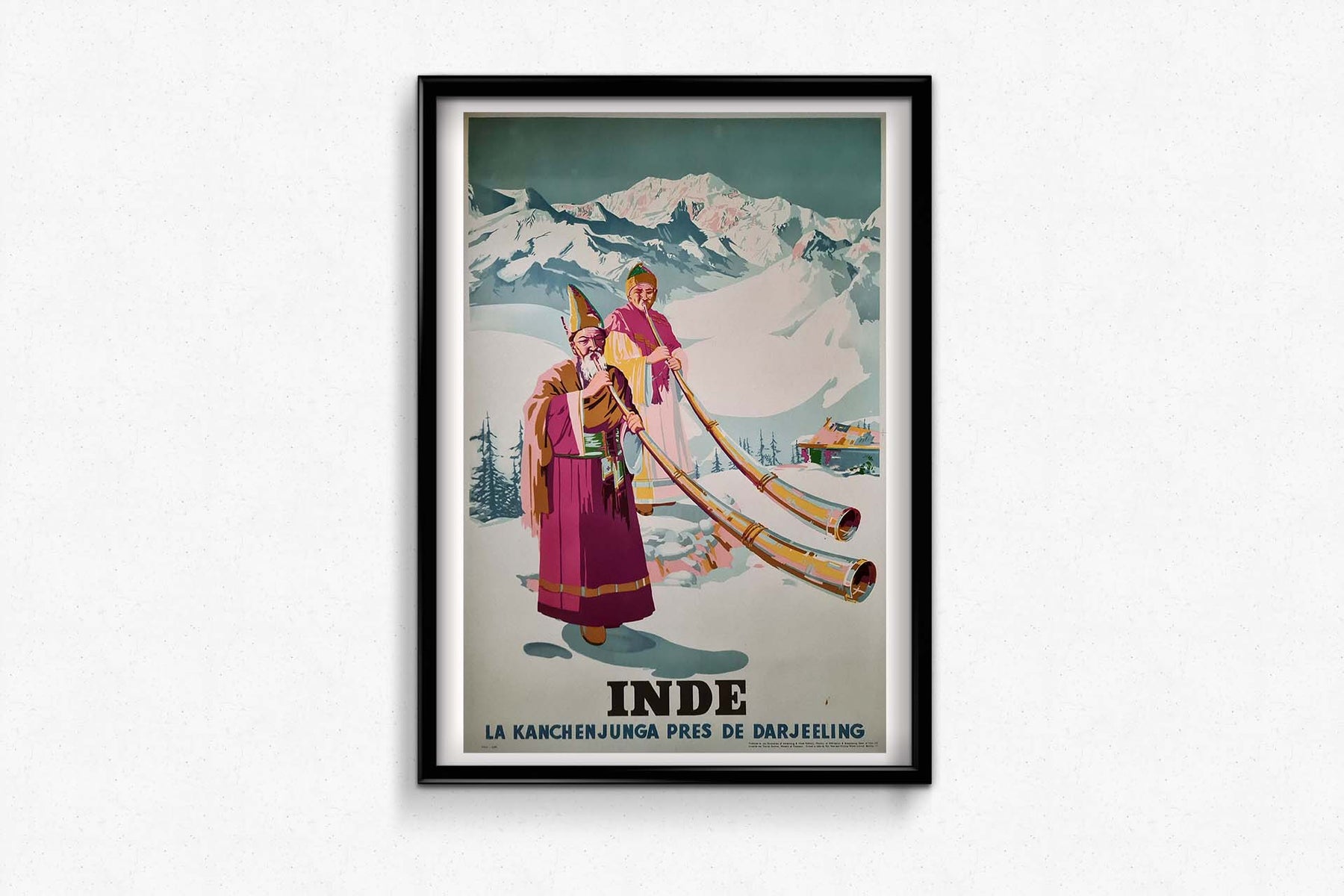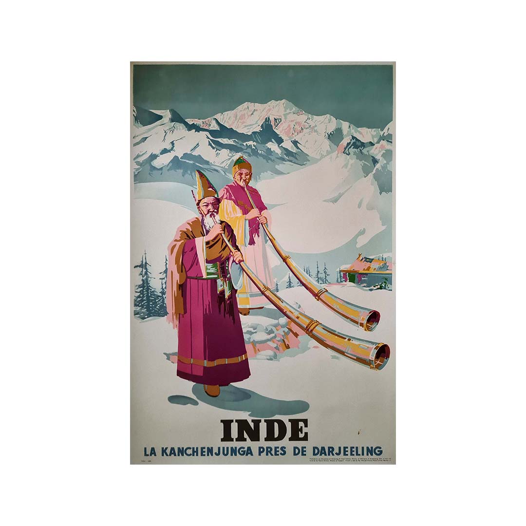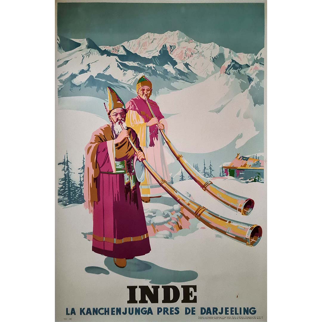 L'affiche originale de Sobha Singh, datant de 1958 et intitulée « Inde - La Kanchenjunga près de Darjeeling », est un hommage saisissant à l'imposante montagne du Kanchenjunga, près de Darjeeling, en Inde. Cette œuvre d'art magnifique nous transporte au cœur des paysages himalayens immaculés et nous invite à contempler la grandeur de cette merveille naturelle.