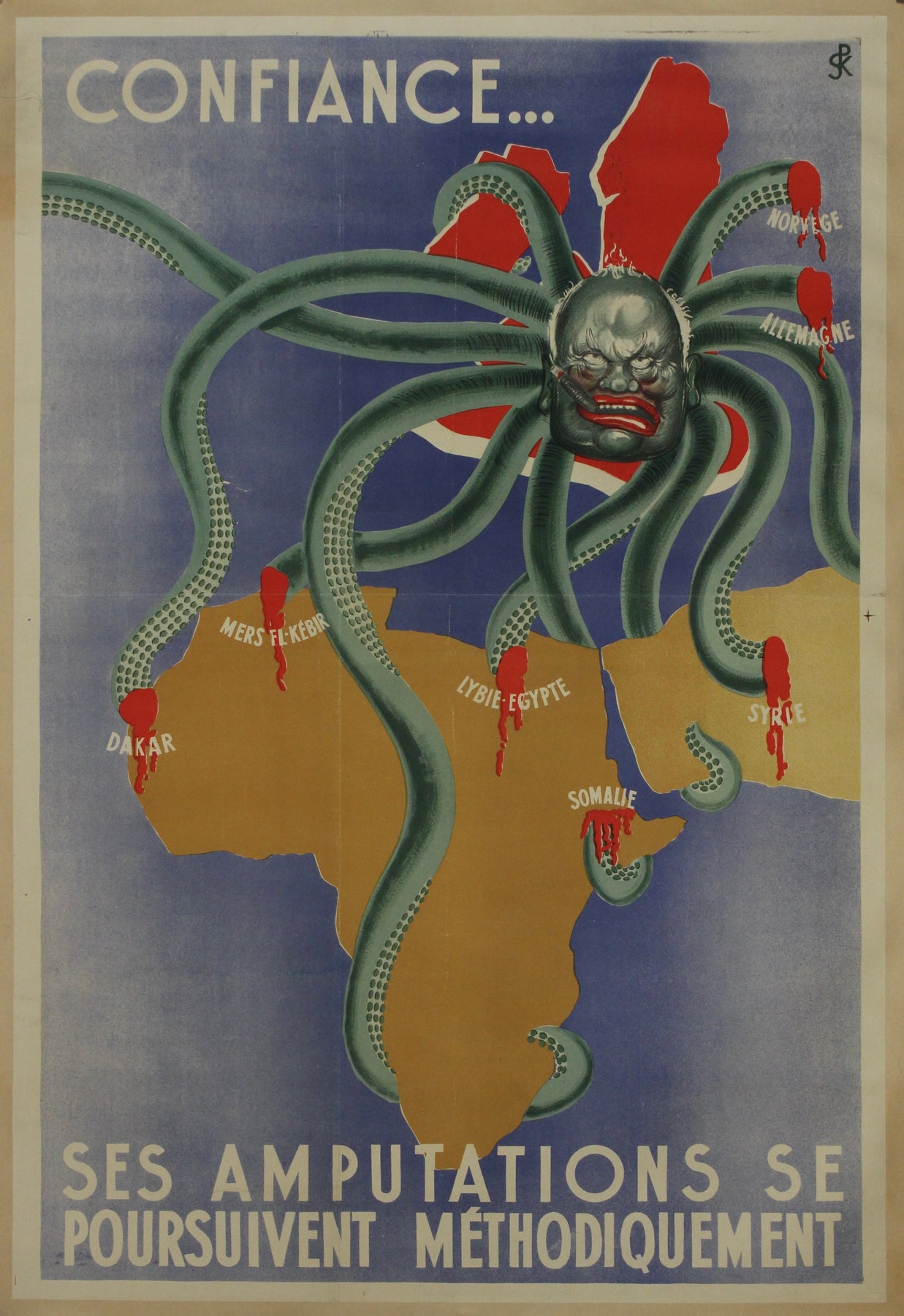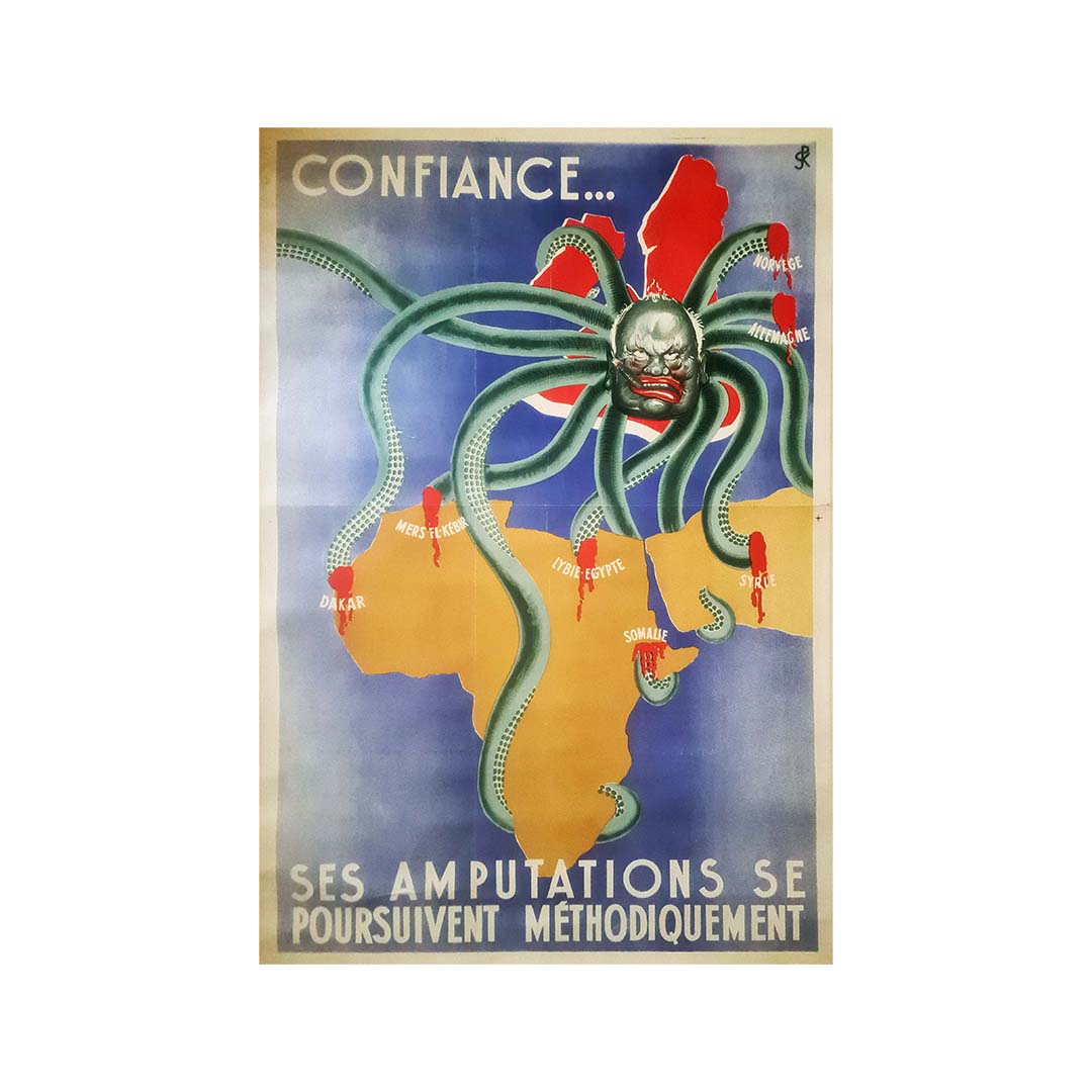 L'affiche de propagande originale, intitulée « Confiance… Ses amputations se poursuivent méthodiquement », constitue un témoignage remarquable de l'époque de la France de Vichy et de la propagande nazie anti-britannique durant la Seconde Guerre mondiale. Cette affiche illustre de façon frappante le pouvoir des images et leur capacité à influencer les émotions et à façonner l'opinion publique.