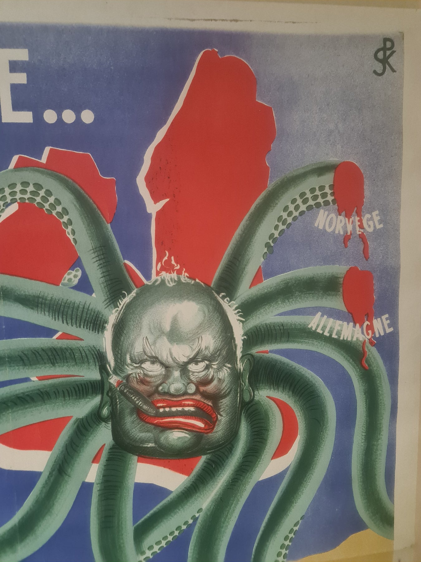Cette œuvre de propagande a été créée pendant l'occupation française sous le régime de Vichy, après la défaite de la France face à l'Allemagne en 1940. Conçue pour attiser le sentiment anti-britannique, elle visait à influencer l'opinion publique et à rallier le soutien aux puissances de l'Axe. L'inscription « Spk » (ou « Psk »), présente sur diverses affiches anti-britanniques de l'époque, demeure mystérieuse quant à son origine.