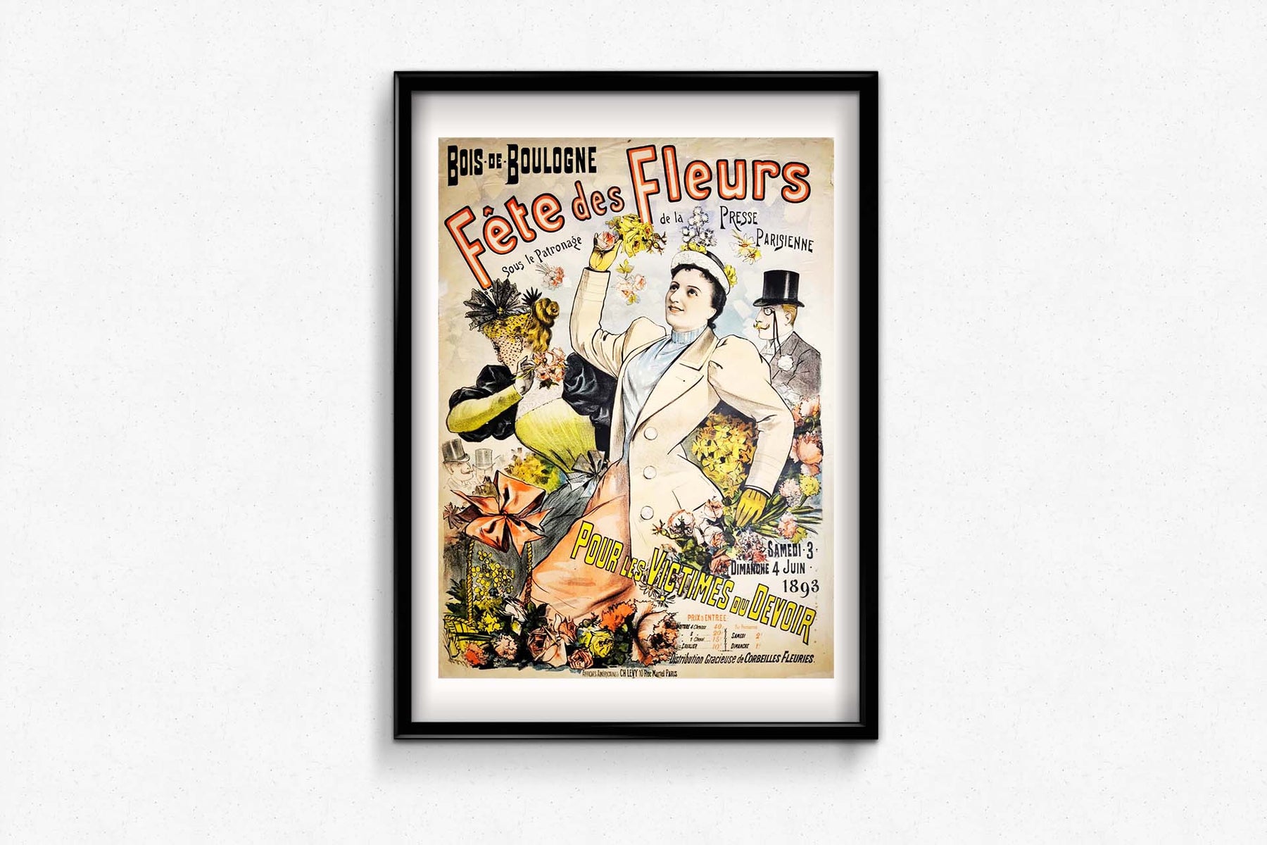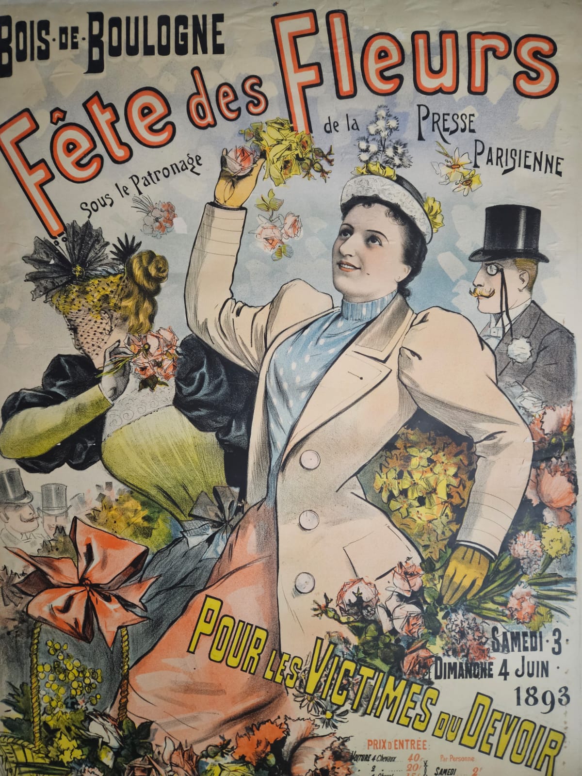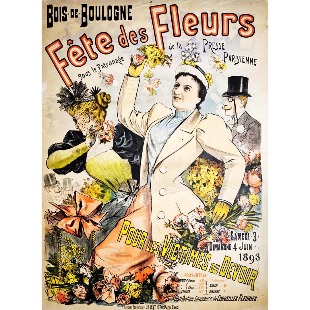 Magnifique affiche de Louis Galice pour la fête des fleurs du Bois de Boulogne, dédiée aux victimes du devoir.