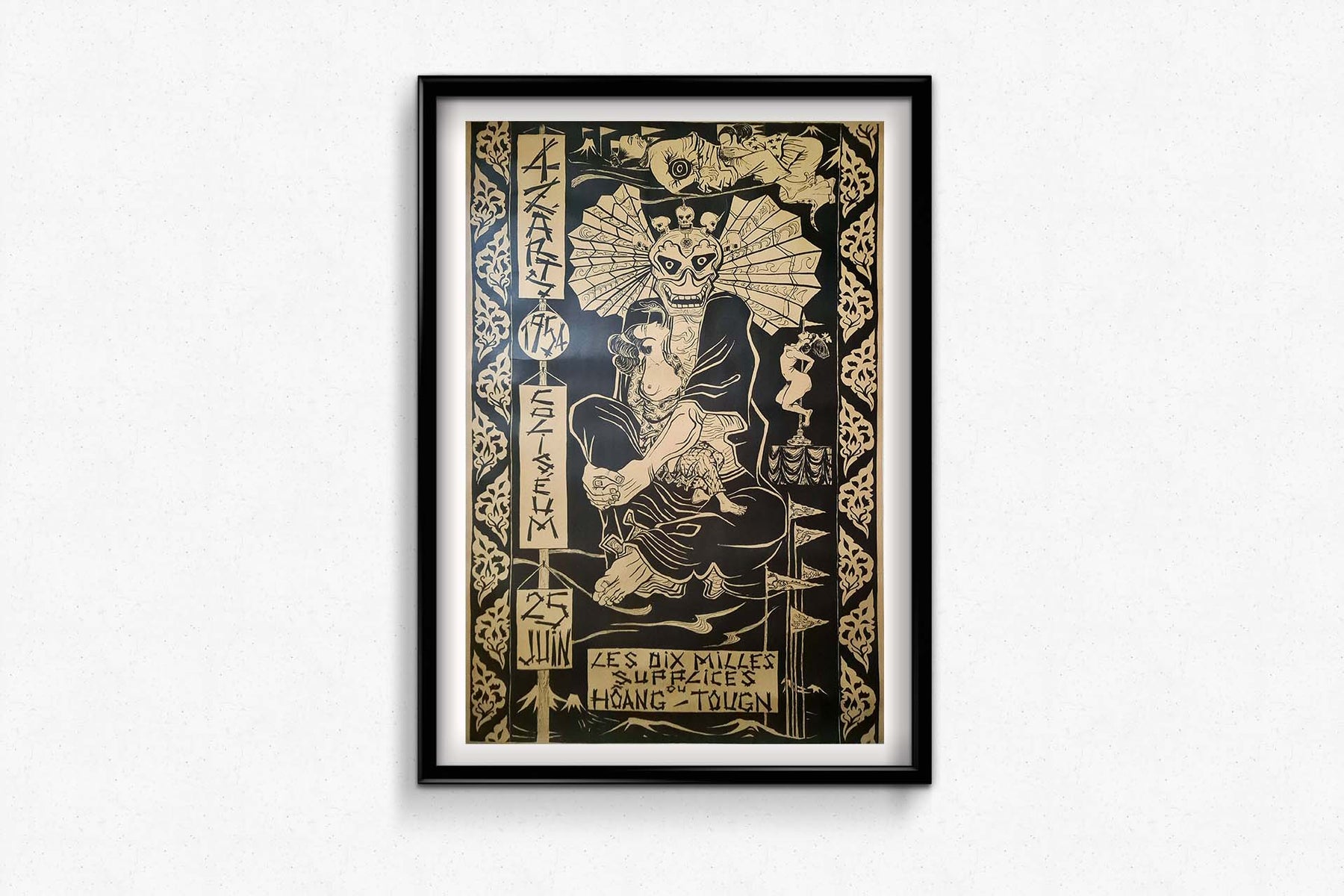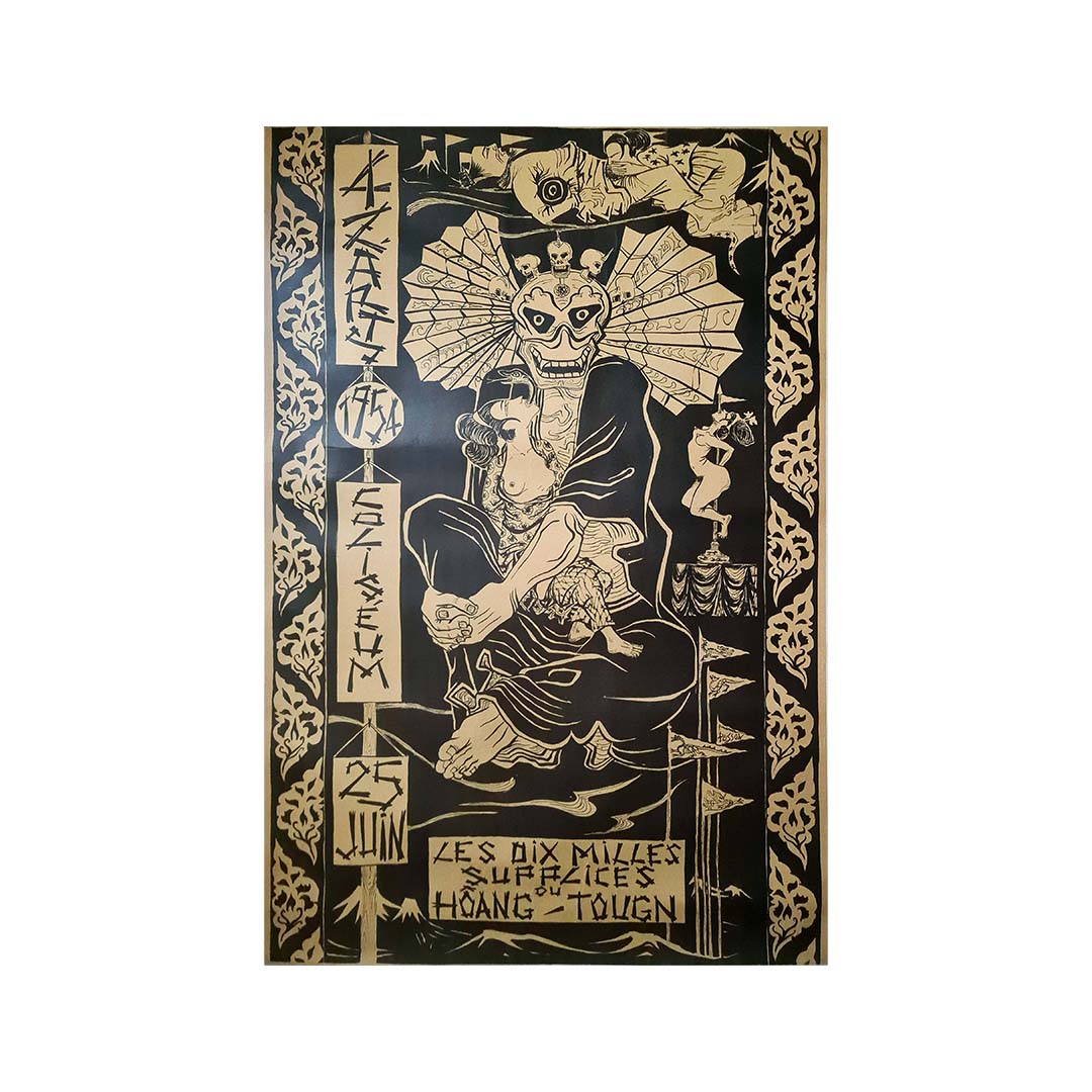 En conclusion, l'affiche originale de Plisson pour « Les Dix Mille Supplices du Hoang-Tougn » (1954) est non seulement une œuvre d'art captivante, mais aussi un symbole de l'héritage artistique du Bal des Quat'Z'Arts. Cet événement annuel, né d'une volonté de collaboration et d'expression artistique, a marqué durablement l'histoire culturelle parisienne et son influence continue de rayonner auprès des artistes et des amateurs d'art.