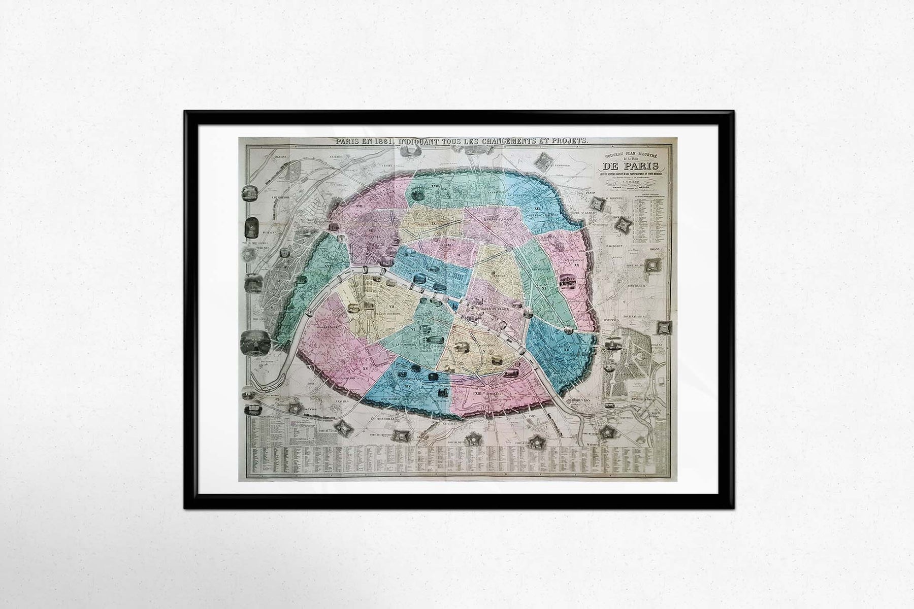 Aujourd'hui, le Nouveau Plan Illustré de la Ville de Paris de 1861 est devenu une pièce de collection précieuse pour les passionnés d'histoire, de cartographie et d'amour de Paris. Il nous rappelle l'importance de la cartographie dans la préservation de notre patrimoine culturel et urbain, tout en offrant un regard nostalgique sur la beauté et l'évolution de la Ville Lumière. Cette carte continue de fasciner et d'inspirer, soulignant la valeur intemporelle de la cartographie comme moyen de représenter et de comprendre un monde en perpétuelle mutation.