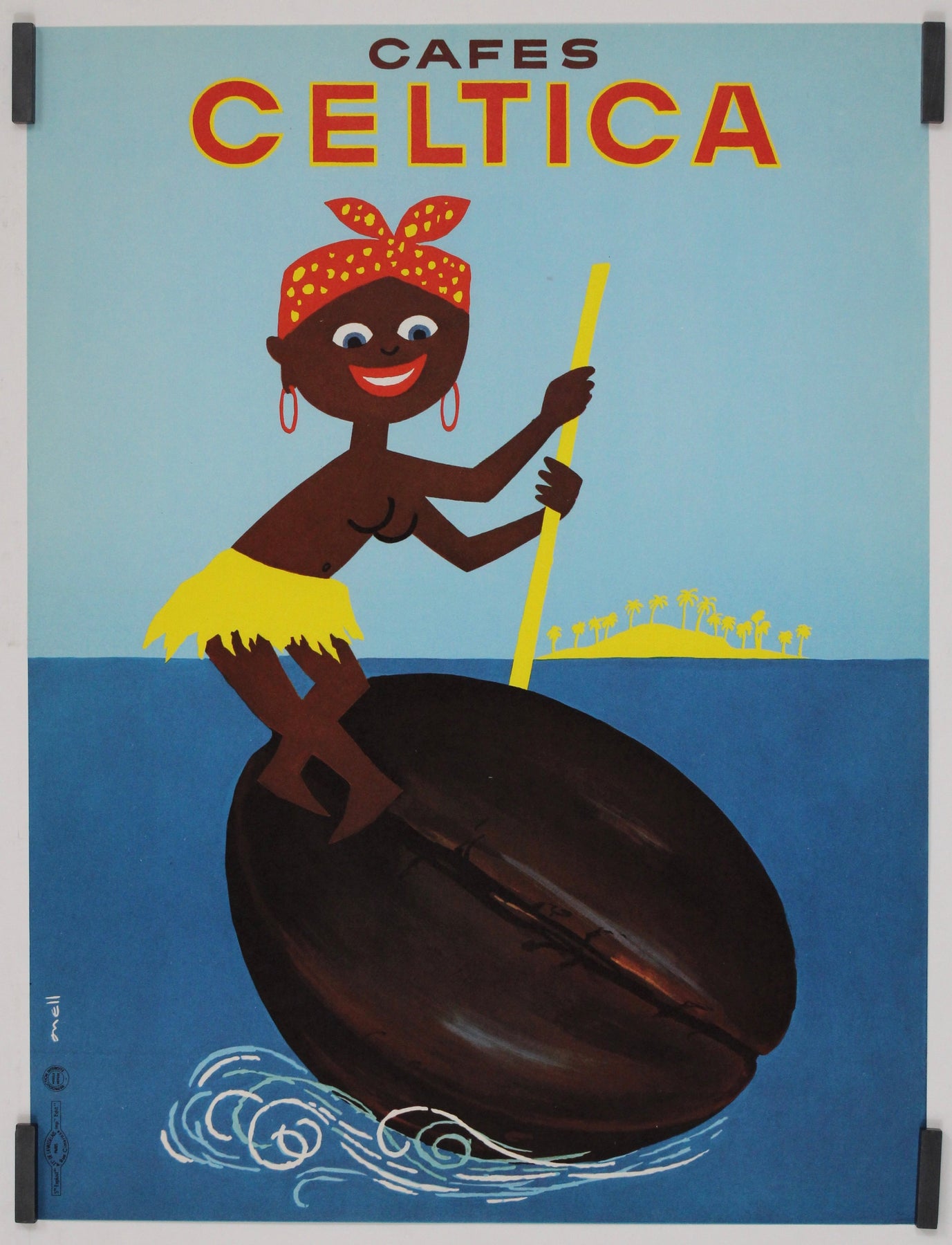 L'affiche originale d'Onell, datant des années 1960 et intitulée « Cafés Celtica », dégage un charme vintage et une élégance intemporelle. Créée à une époque marquée par une effervescence artistique et un dynamisme culturel remarquables, cette affiche capture avec une finesse exceptionnelle l'essence même de la culture du café de l'époque.