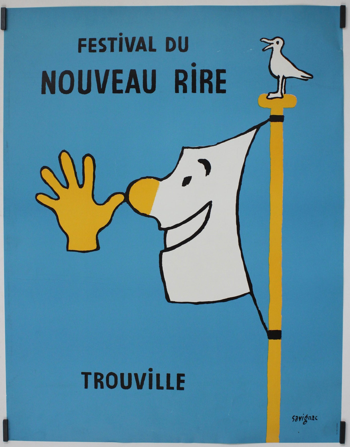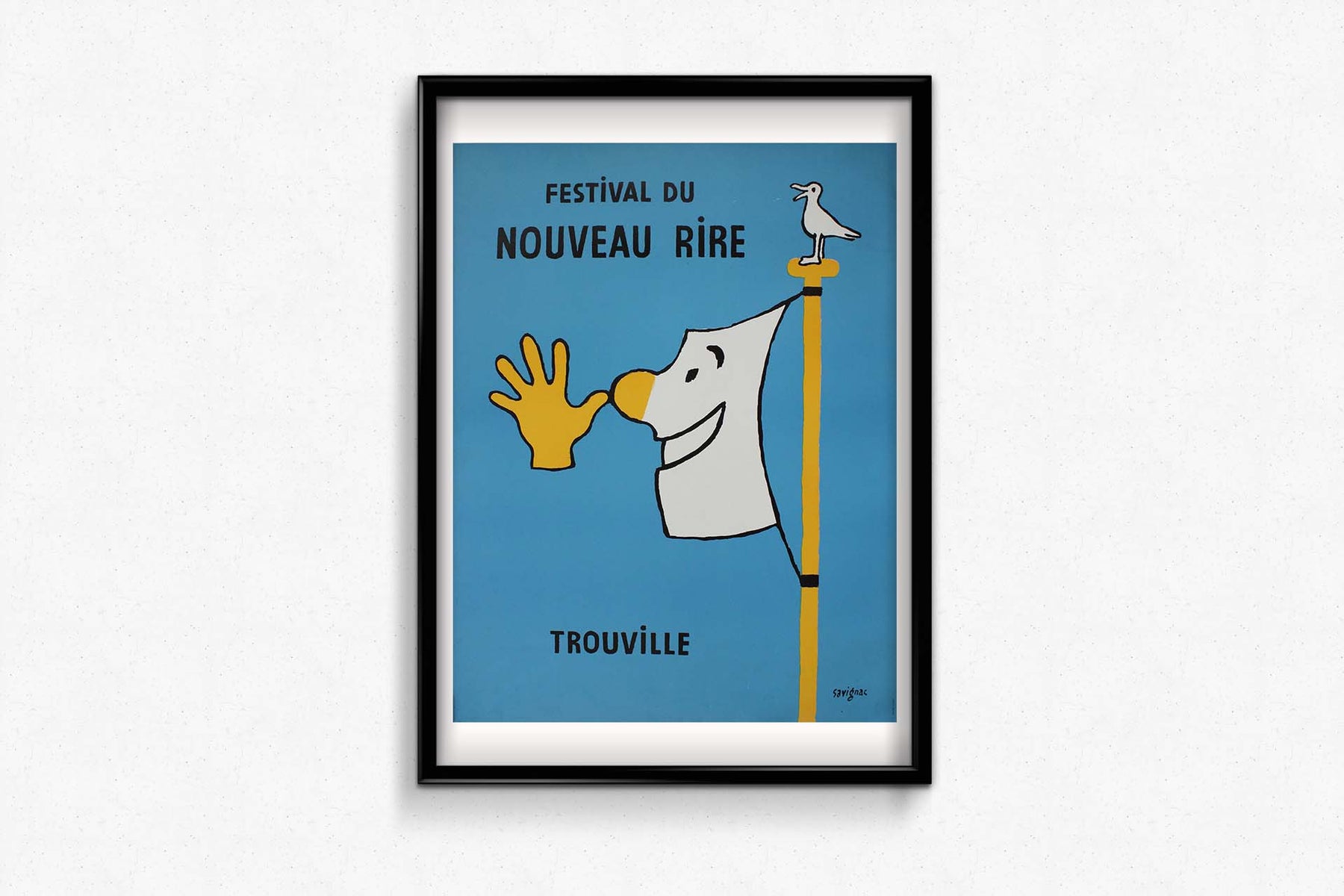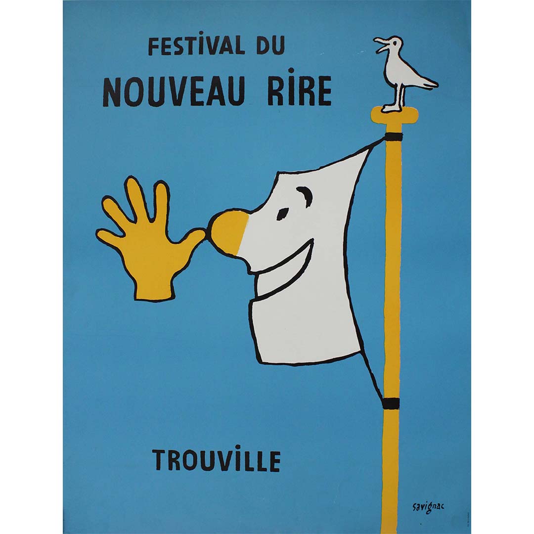 Dans le monde du graphisme et des arts visuels, peu de noms résonnent autant que celui de Raymond Savignac (1907-2002). Reconnu pour son style singulier et fantaisiste, Savignac a créé une œuvre harmonieuse, mêlant humour, simplicité et élégance. L'une de ses créations les plus marquantes, l'affiche originale du « Festival du Nouveau Rire Trouville », témoigne de sa maîtrise artistique et de l'attrait intemporel de son approche unique du graphisme.