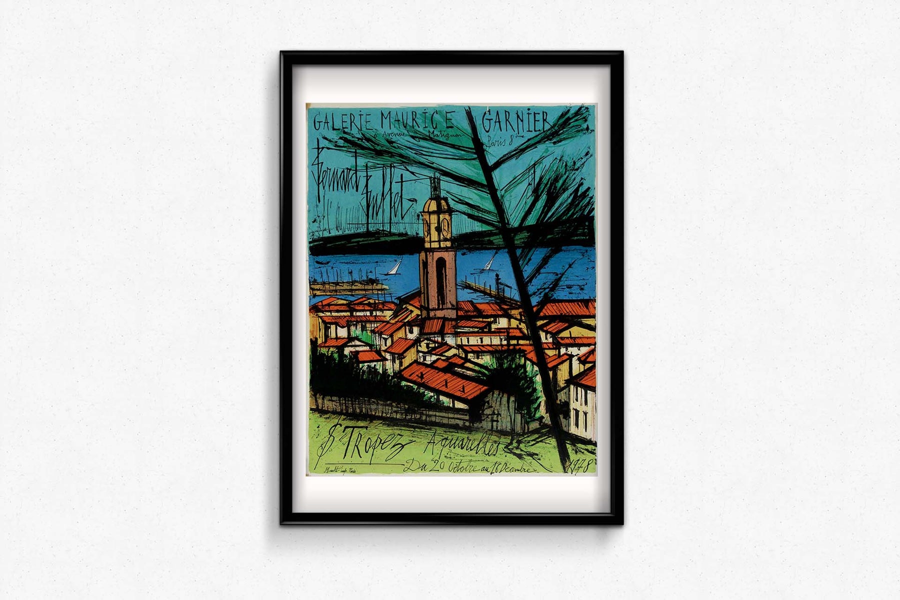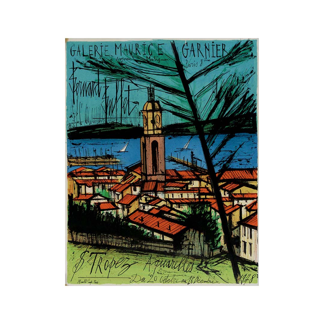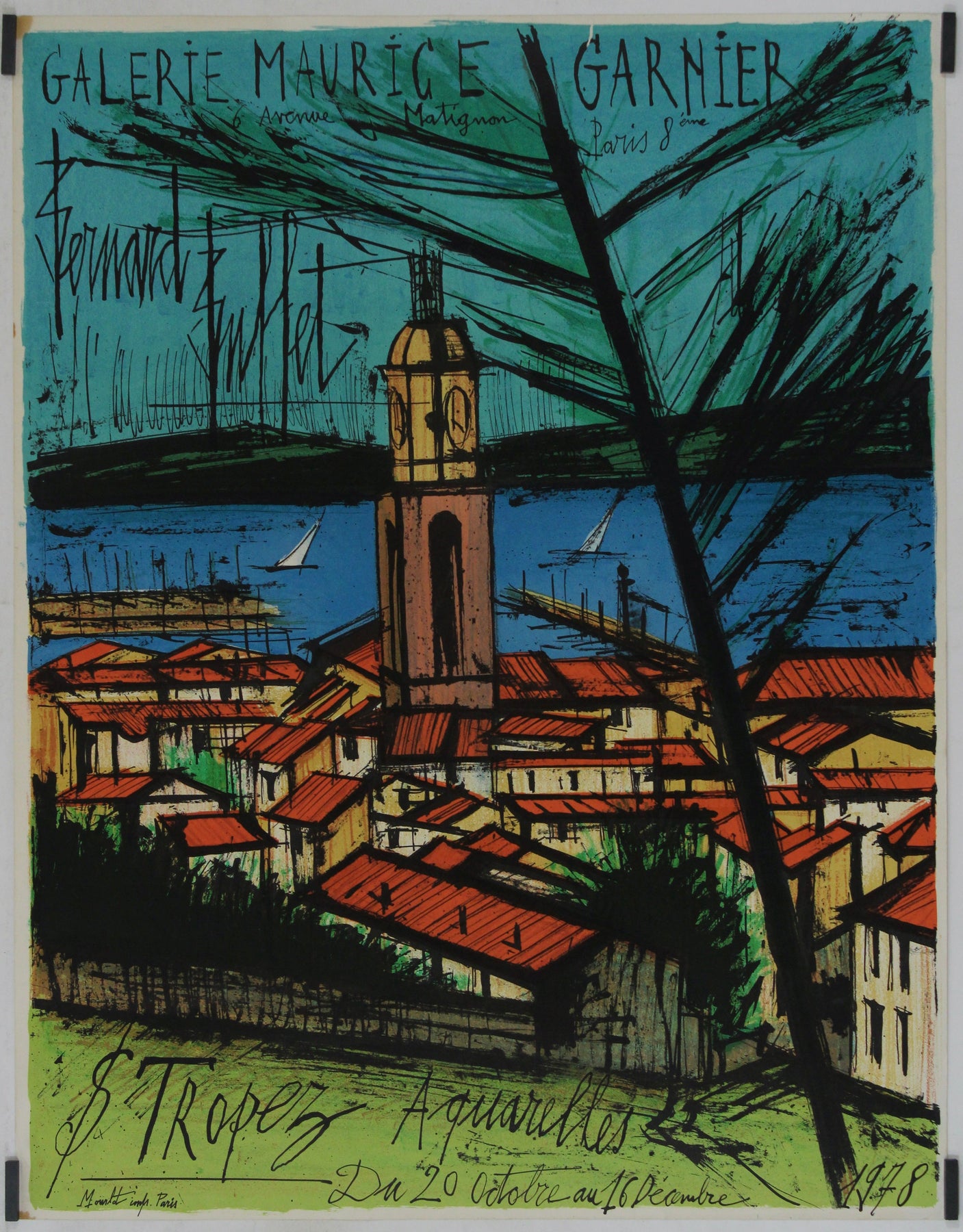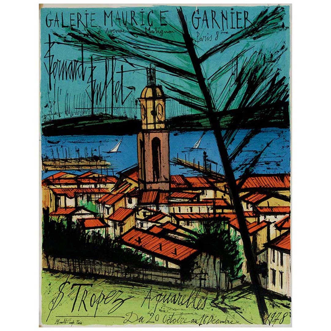 Magnifique affiche pour l'exposition de Bernard Buffet de 1978, annonçant l'arrivée de « St. Tropez Aquarelles » à la Galerie Maurice Garnier.