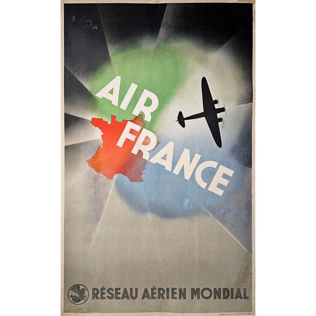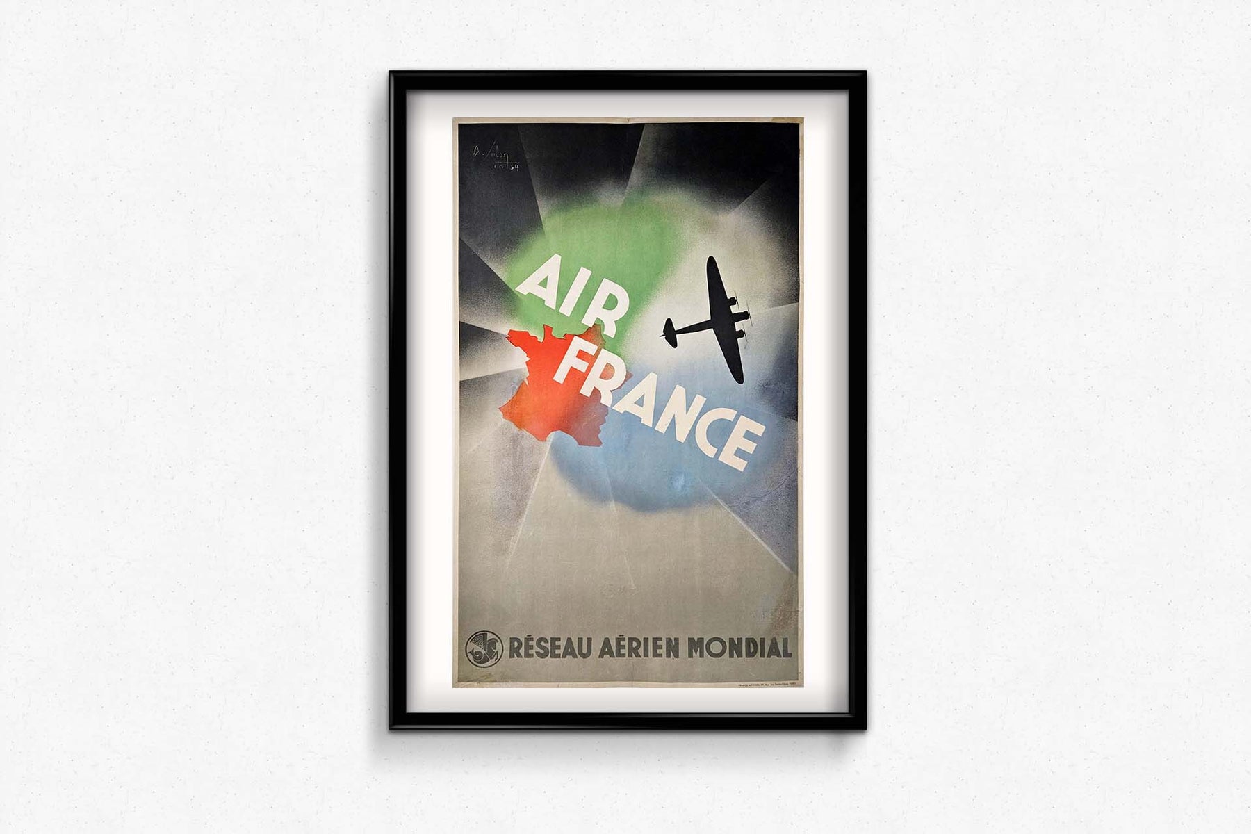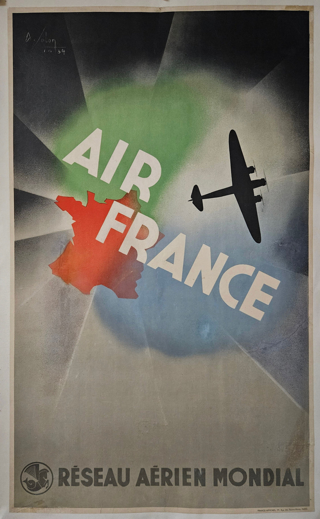Dans le domaine de la publicité et du design de voyage, l'affiche originale d'Albert Solon pour Air France Réseau Aérien Mondial, datant de 1934, témoigne avec brio de l'attrait des voyages autour du monde. Le talent de Solon, empreint de sophistication et d'élégance, invite le spectateur à un périple qui transcende les frontières et s'élève dans les cieux.