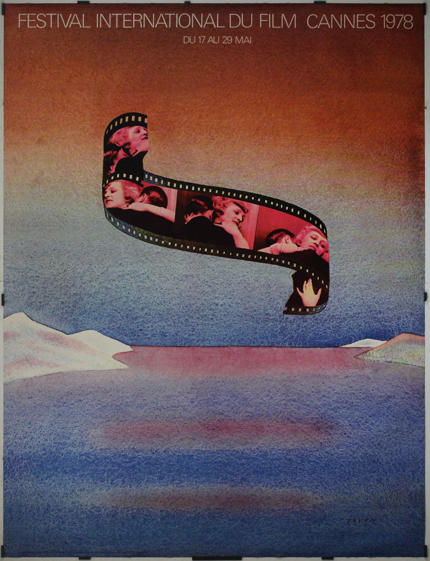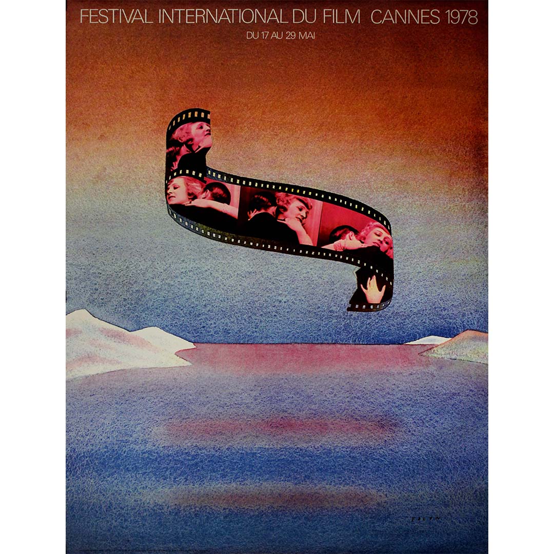 L'affiche originale de 1978, réalisée par Jean-Michel Folon pour le Festival International du Film de Cannes, capture l'essence du charme cinématographique et l'esprit vibrant de l'un des festivals de cinéma les plus prestigieux au monde.