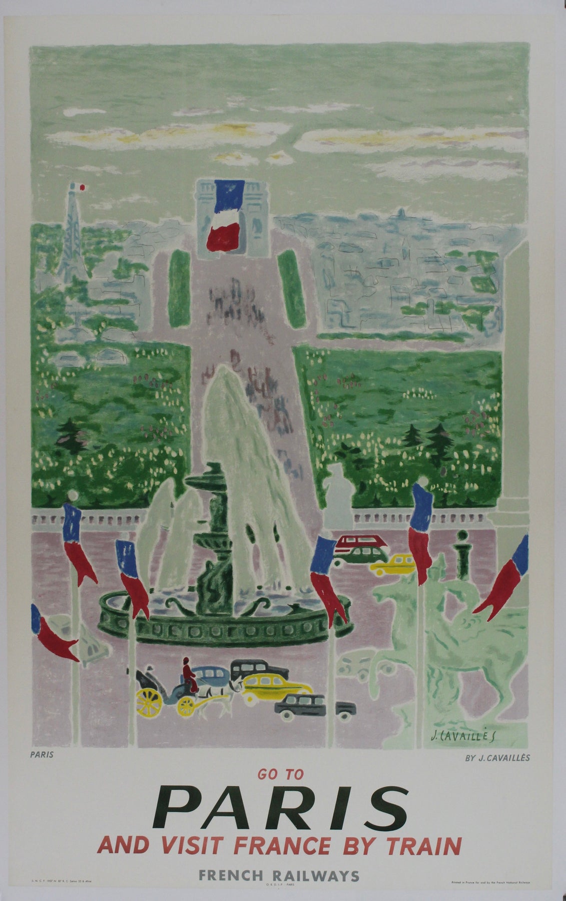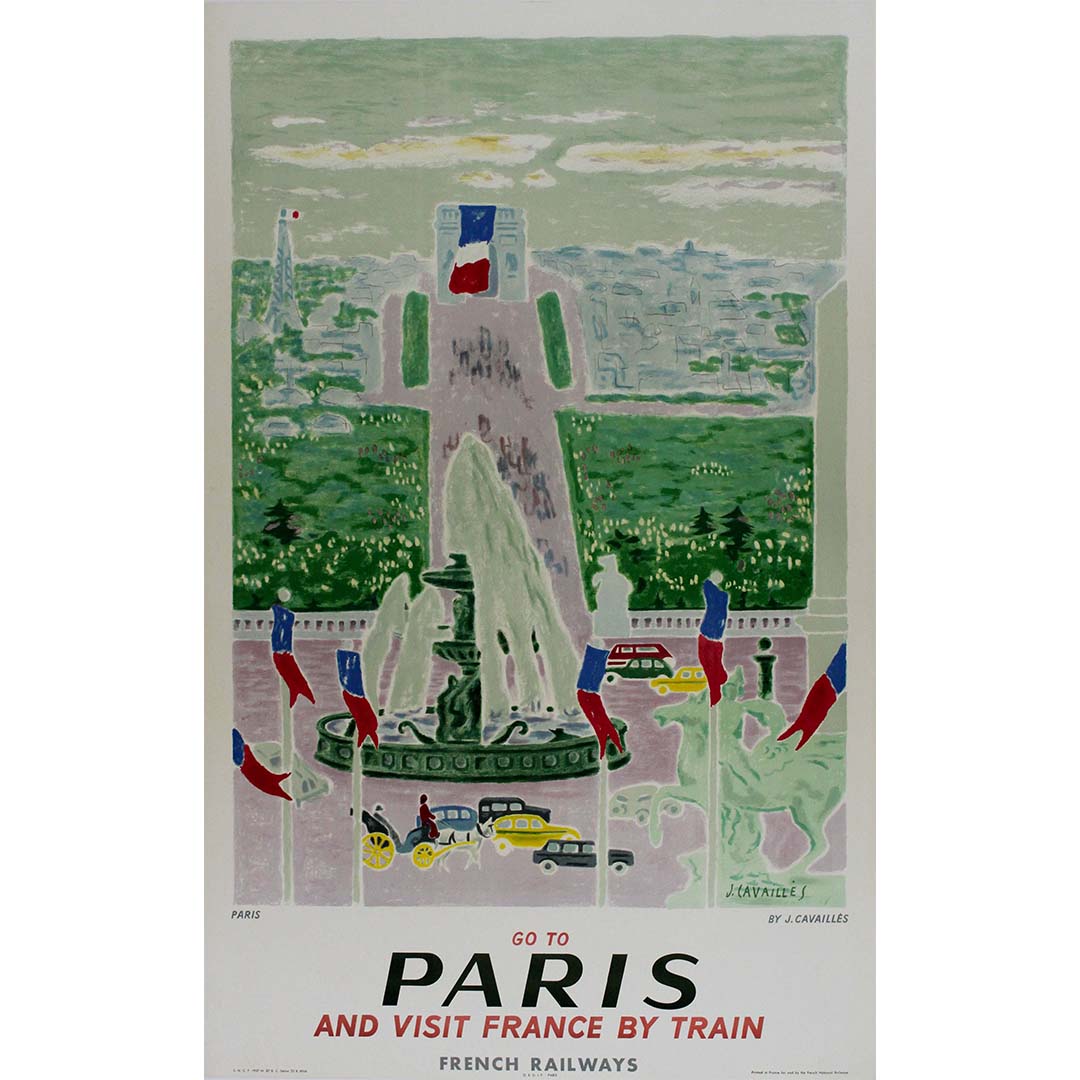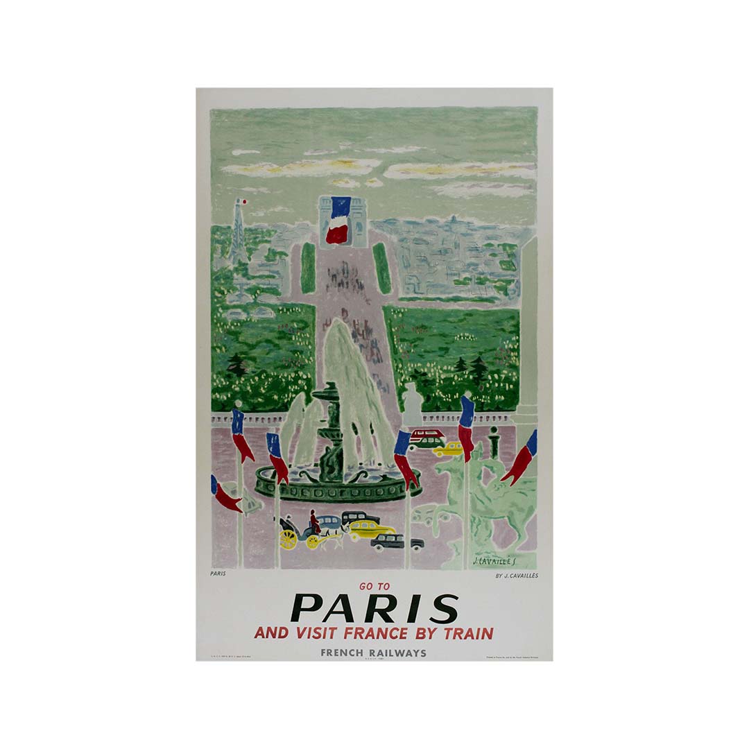 L'affiche SNCF de Jules Cavaillès (1957) est un chef-d'œuvre visuel qui invite les voyageurs à un périple coloré et artistique vers Paris et à la découverte des beautés de la France en train. Cette affiche iconique célèbre le charme du voyage ferroviaire et offre aux spectateurs une porte d'entrée vibrante vers le cœur de la France.