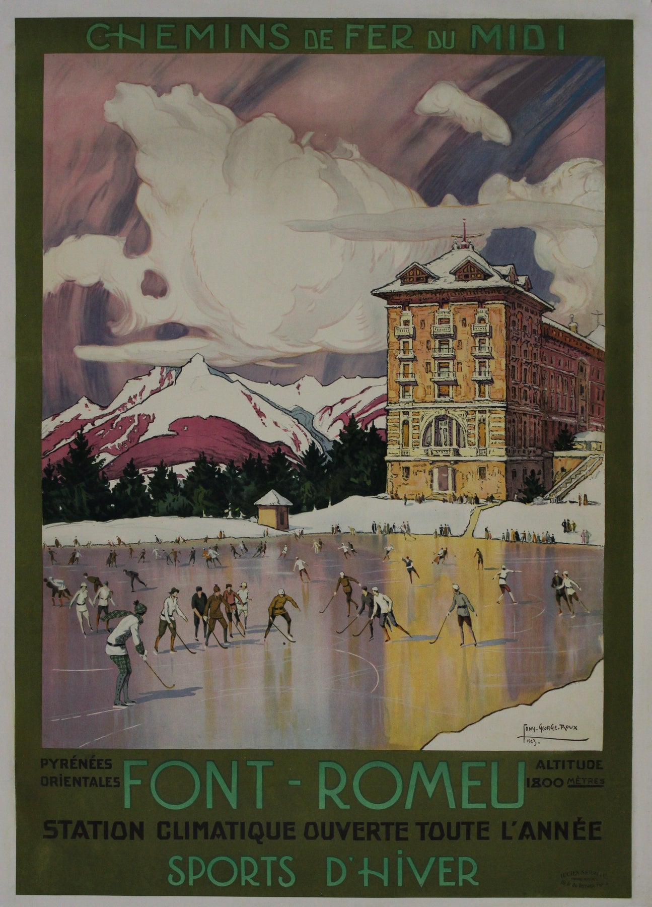 Le chef-d'œuvre de Tony Georges Roux, réalisé en 1923 pour Chemins de fer du Midi, transporte les spectateurs dans le paysage hivernal féérique de Font-Romeu, au cœur des Pyrénées-Orientales. Cette œuvre d'art, loin de se contenter de promouvoir les sports d'hiver, capture l'essence d'une époque révolue grâce à son esthétique singulière.
