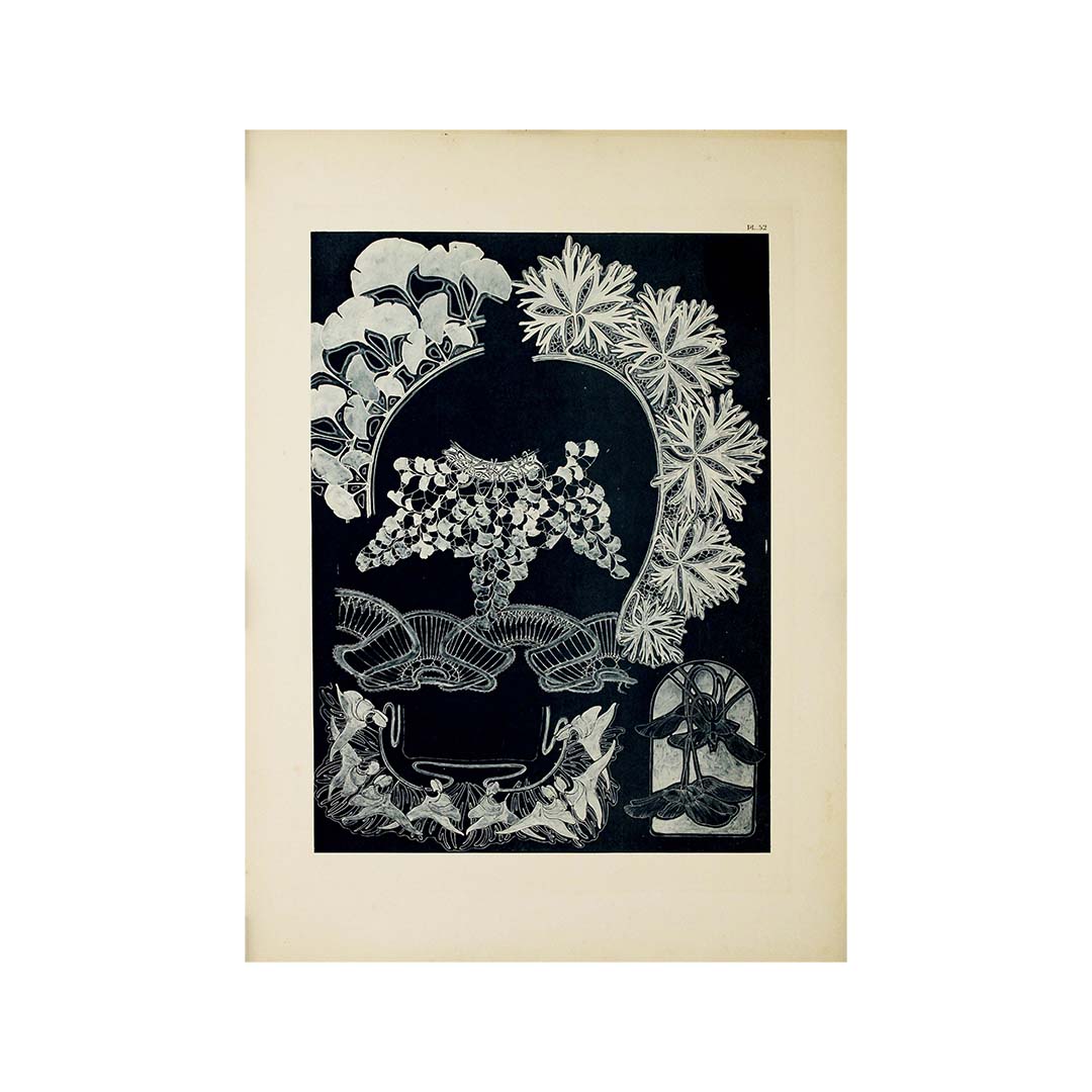 « Documents décoratifs » est un recueil des créations emblématiques de Mucha, rassemblant une multitude de détails complexes, de formes organiques et une célébration de la beauté féminine. Chaque page de ce chef-d'œuvre témoigne de l'engagement de Mucha à créer un art non seulement visuellement enchanteur, mais aussi empreint d'une profonde signification.