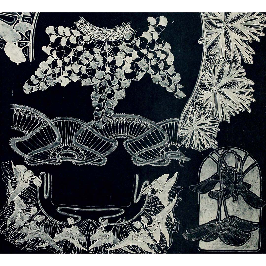 Bibliothèque centrale des Beaux-Arts - Panneaux décoratifs. Études d'applications florales, papiers peints, frises, vitraux, orfèvrerie, etc.