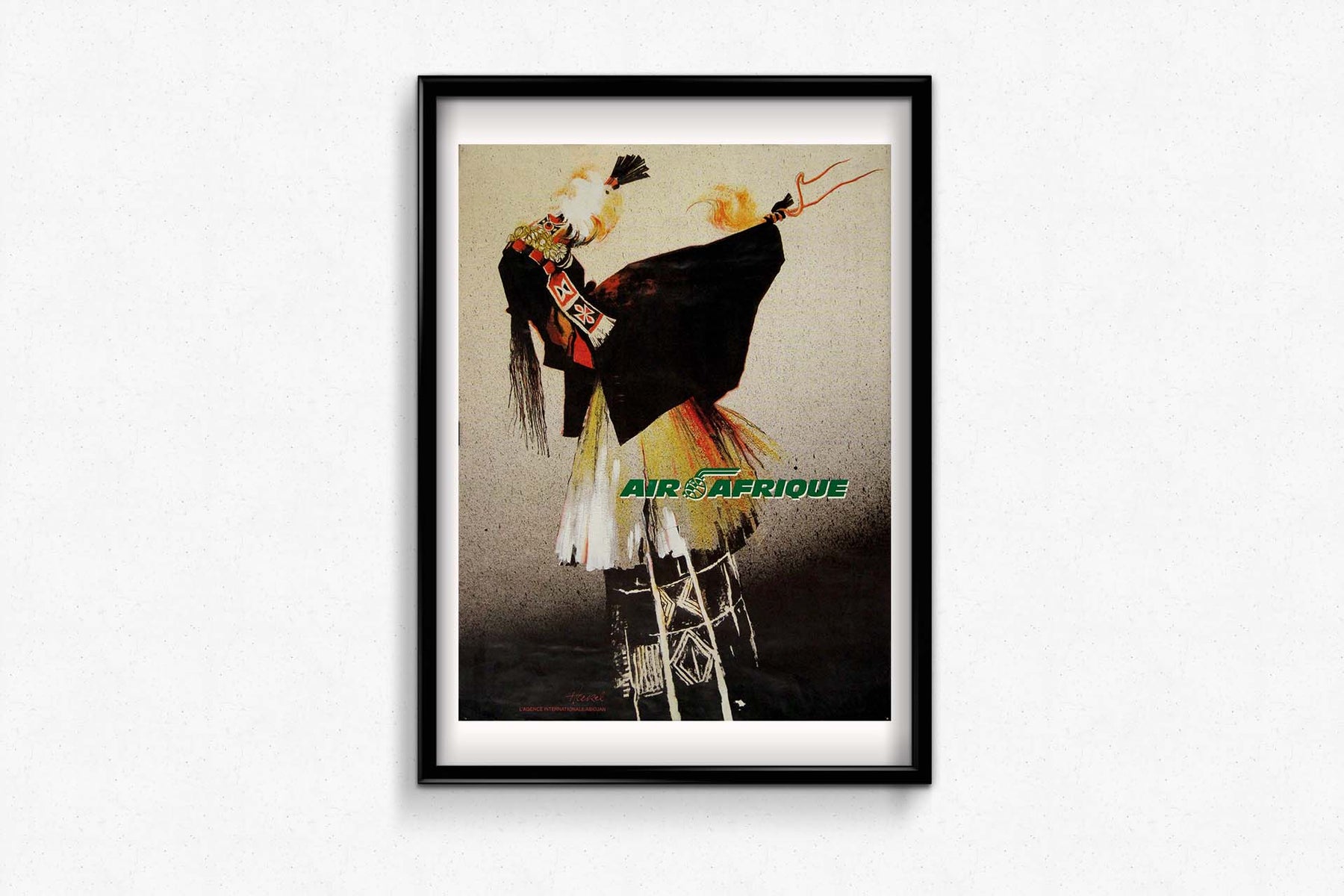 L'affiche met l'accent sur la commodité et la connectivité offertes par Air Afrique, présentant la compagnie aérienne comme une porte d'entrée vers la découverte des paysages diversifiés et dynamiques de l'Afrique. Bien plus qu'une simple publicité, cette affiche symbolise une période d'optimisme et de croissance pour l'Afrique postcoloniale, soulignant le rôle du transport aérien dans la promotion du développement économique et des échanges culturels.