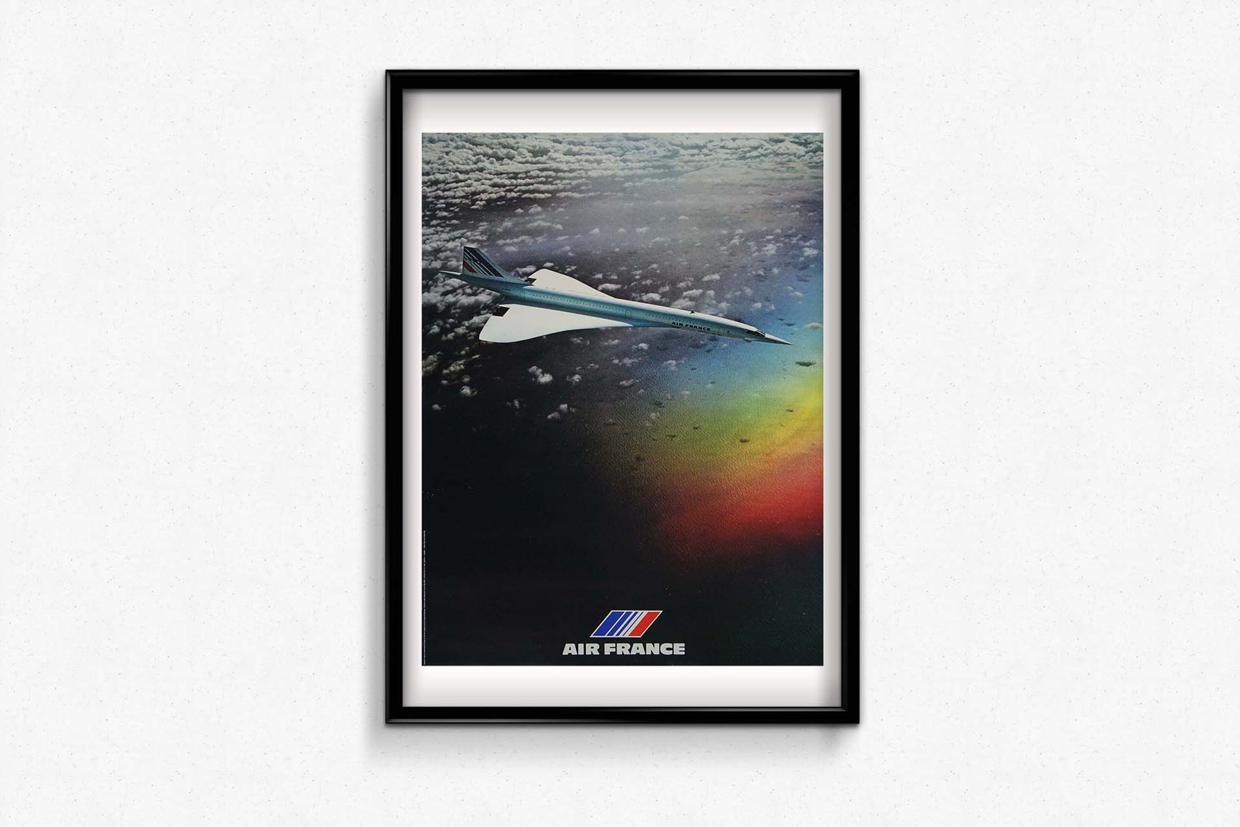 Sur la photographie de Bulté, le Concorde est représenté dans toute sa splendeur, fendant les nuages sur fond de ciel bleu. Le jeu d'ombre et de lumière souligne les lignes élégantes de l'appareil, tandis que sa livrée distinctive arbore fièrement le logo d'Air France, symbole de l'engagement de la compagnie aérienne envers l'innovation et l'excellence dans le transport aérien.