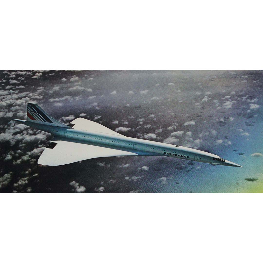 L'affiche photographique originale de 1977, signée Bulté et mettant en scène le Concorde d'Air France, capture l'essence même de la vitesse, du luxe et du raffinement associés à cet avion mythique. Signée par Bulté, photographe de renom reconnu pour son talent à immortaliser des images dynamiques et captivantes, cette affiche incarne à merveille l'excitation et le frisson des voyages aériens à l'époque du Concorde.