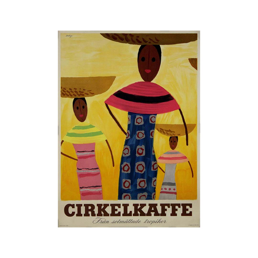 L'affiche Cirkelkaffe de G. Orrby, datant de 1950, témoigne de la puissance du récit visuel en publicité. Grâce à ses couleurs éclatantes, ses personnages stylisés et son thème tropical, elle allie avec brio art et attrait commercial pour créer une œuvre graphique mémorable et percutante.