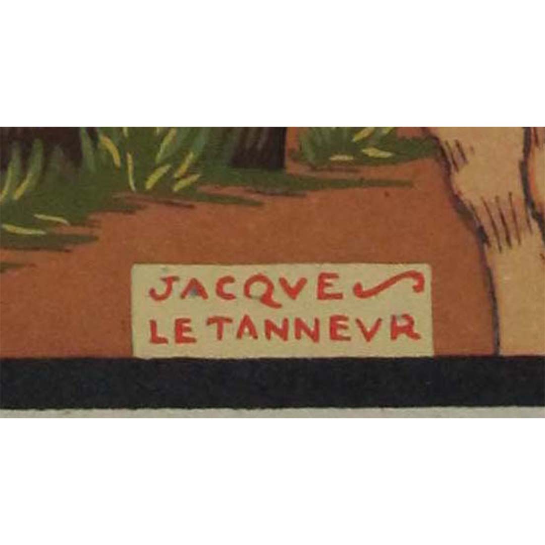 Ce pochoir datant des années 1930 est une pièce importante pour les collectionneurs et les chercheurs qui s'intéressent aux liens entre art et représentation culturelle. Il offre un aperçu de la vision artistique de Le Tanneur et de sa contribution à la représentation de la vie régionale grâce à des techniques novatrices. En tant qu'artefact historique, il souligne l'importance de l'art pour saisir et célébrer l'essence des pratiques traditionnelles et de l'identité culturelle.