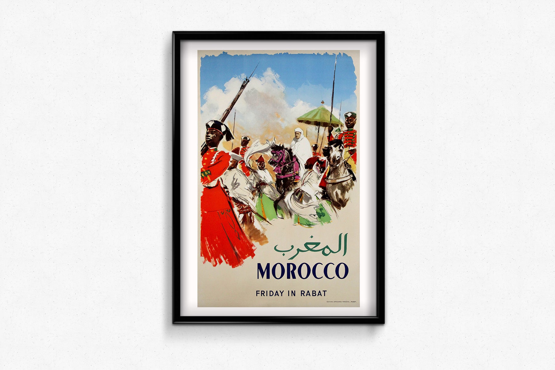 Aujourd'hui, cette affiche est très prisée des collectionneurs pour son importance historique et son excellence artistique, offrant un aperçu intemporel du passé du Maroc et de l'héritage durable du roi Mohammed V, le dirigeant bien-aimé de la nation et symbole de l'indépendance.
