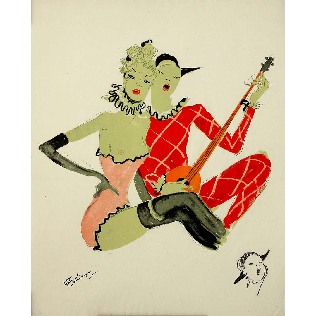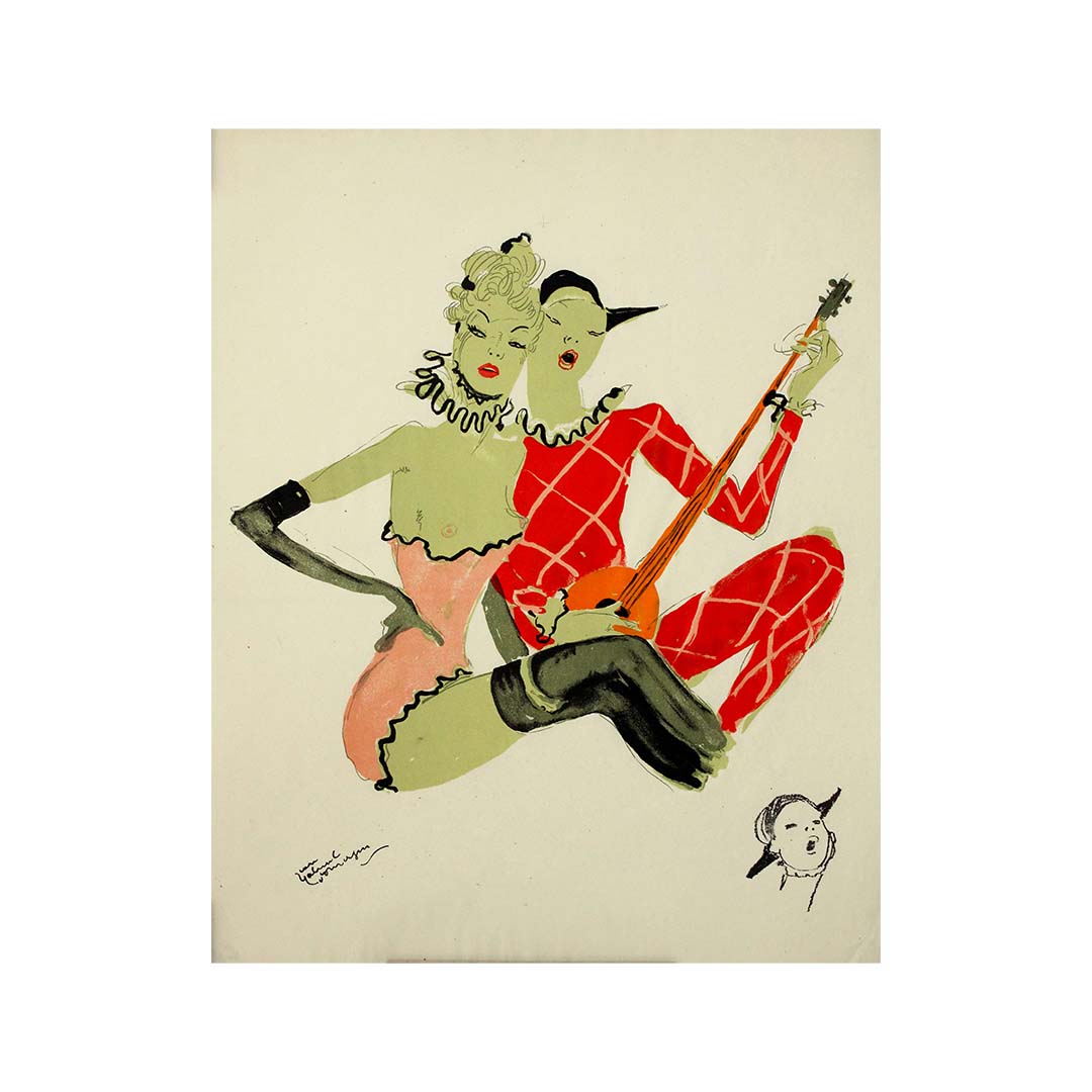 Qu’elle orne des collections privées ou soit exposée lors de salons d’art, cette lithographie de 1956 de Jean-Gabriel Domergue continue de fasciner par sa représentation intemporelle de la féminité, de la grâce et du luxe parisien. Elle témoigne du talent de Domergue et de sa contribution à la représentation des idéaux de style et d’ambition de l’élite française du milieu du XXe siècle.