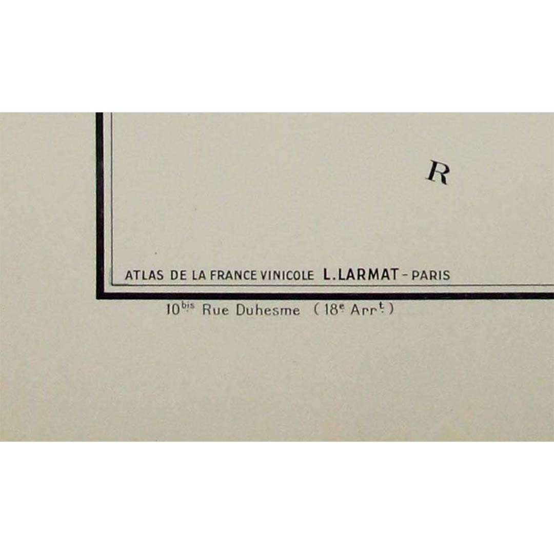 Prix régulier €600,00La carte originale de 1941 de L. Larmat, intitulée « Atlas de la France vinicole – Les vins de Bordeaux : Régions de Sauternes et Barsac », offre une représentation détaillée et précise de deux des plus célèbres régions viticoles au monde pour leurs vins liquoreux. Imprimée par Dorel à Paris, cette carte fait partie d'un atlas plus vaste de Larmat recensant les régions viticoles les plus prestigieuses de France. Elle met en évidence les appellations Sauternes et Barsac, situées dans la sous-région des Graves, à Bordeaux.