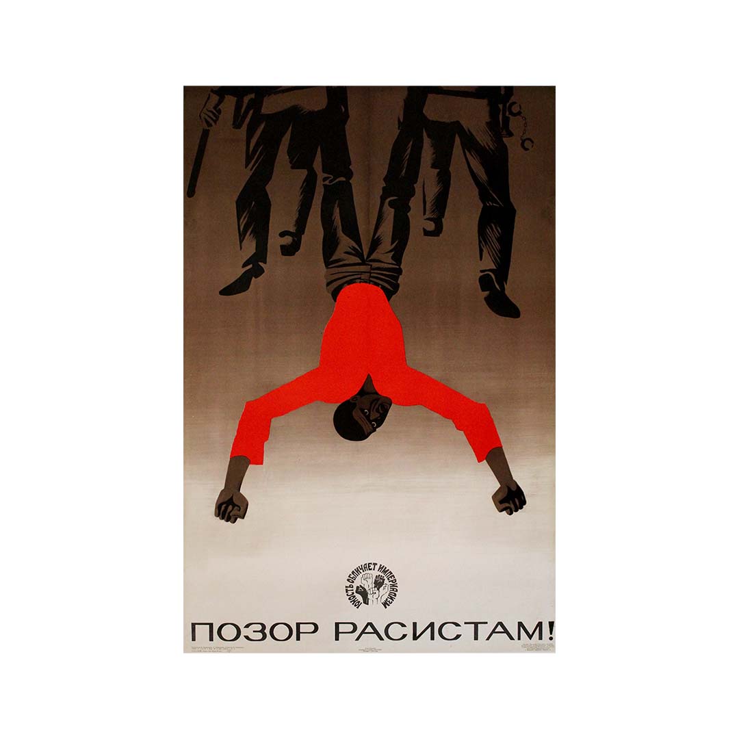 Des affiches comme celle-ci s'inscrivaient dans une vaste campagne soviétique visant à dénoncer les inégalités sociales et les injustices raciales dans les pays occidentaux, notamment aux États-Unis, tout en présentant l'Union soviétique comme un champion de l'égalité et de l'unité internationale. Malgré sa vocation propagandiste, cette affiche demeure un témoignage intemporel de la lutte universelle contre le racisme et les violences systémiques.